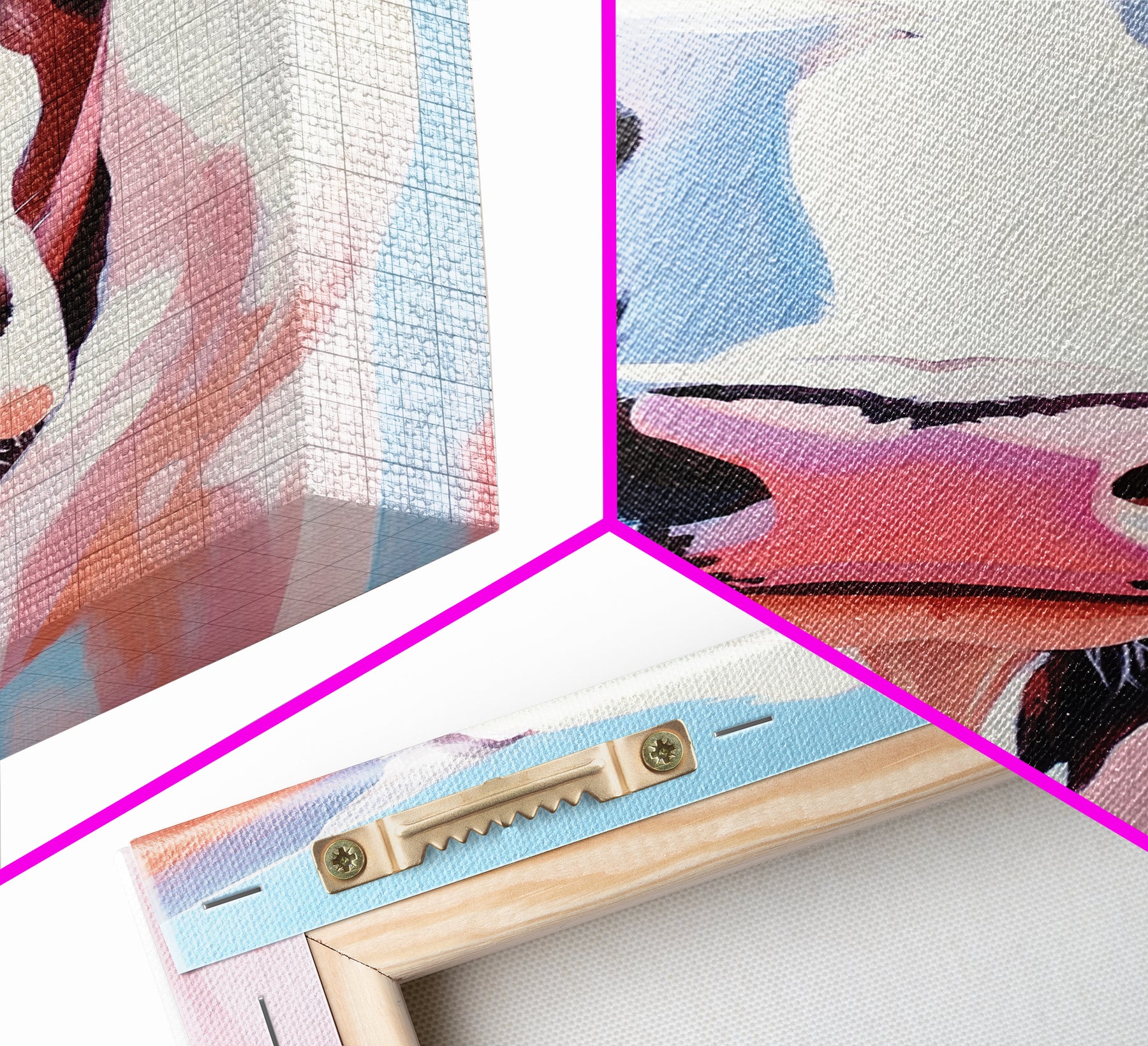 Hello and thank you for taking the time to view our modern high quality giclée artwork! We offer both posters and stretched canvas prints. Our posters are printed on Ultra Matte 60 lb / 230 GSM high quality photo paper, with a thickness of 10 mil. Our canvases are printed on museum grade 350 GSM canvas material with ECO friendly archival grade ink, then hand stretched and stapled over premium, FSC certified and shrink resistant frames. Designed and built to last a lifetime.