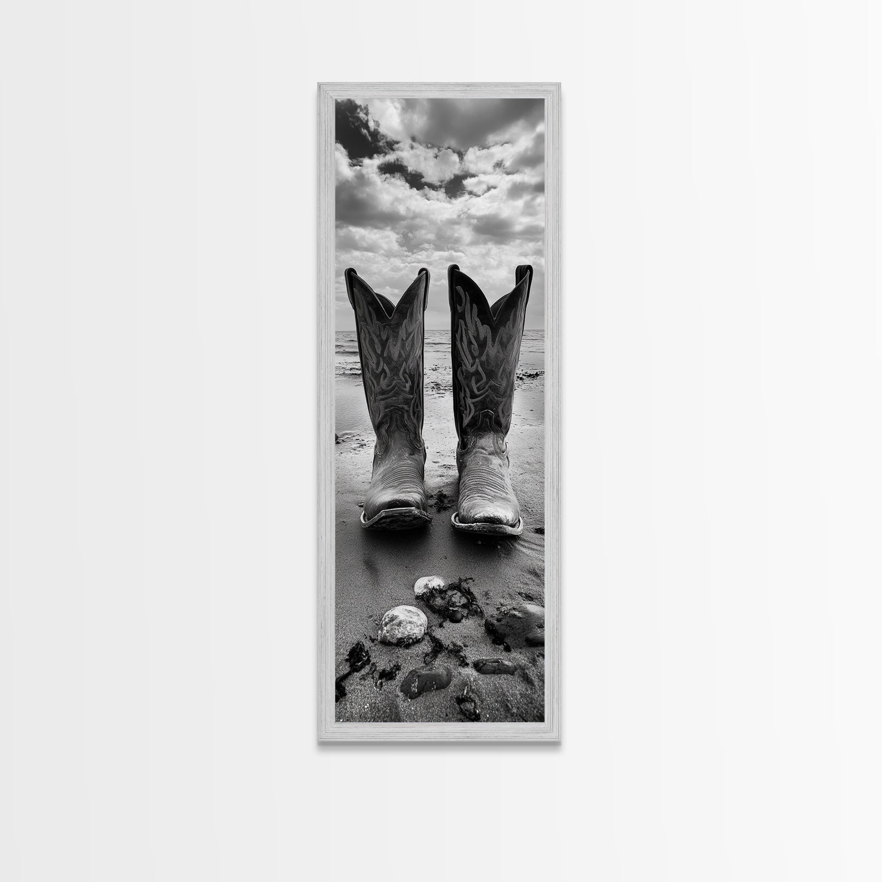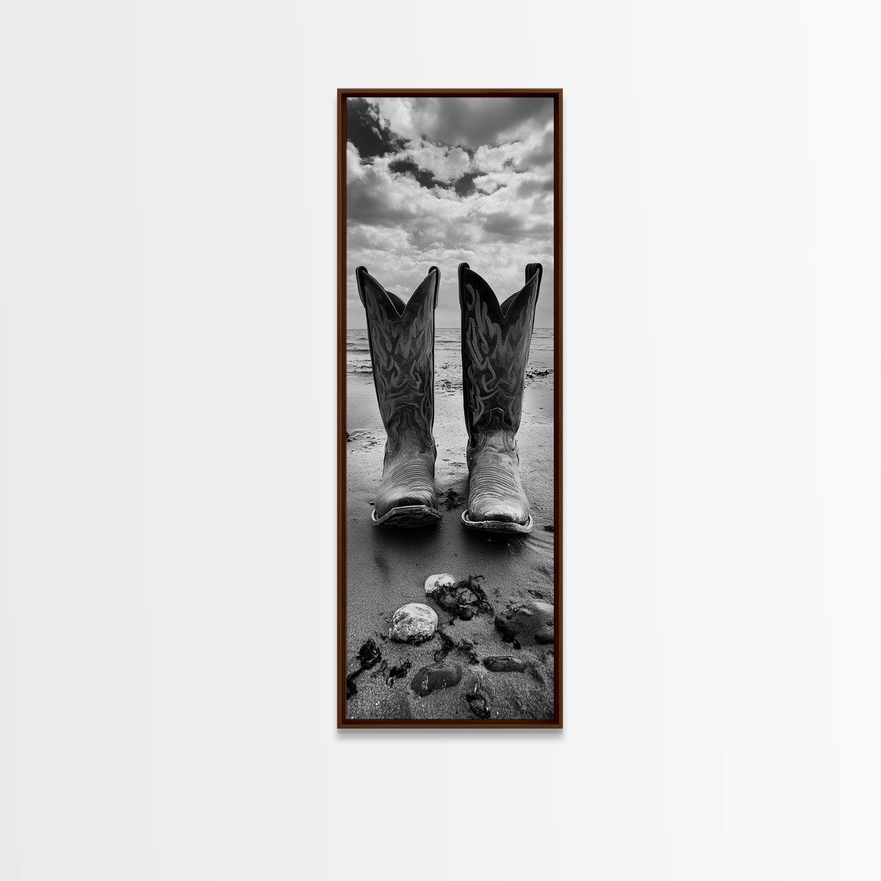 Cowboy Boots, Coastal Cowgirl, Wall Art, Framed Canvas Print, Rustic Décor, Western Artwork, Moody Art, Southwestern Wall Art