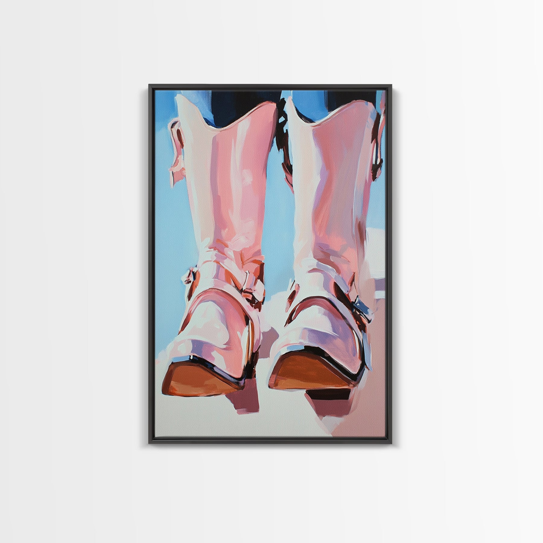 Cowboy Boots Painting, Coastal Cowgirl Wall Art, Western Decor, Farmhouse Art, Framed Canvas Print, Rustic Aesthetic, Bedroom Art, Gift Idea