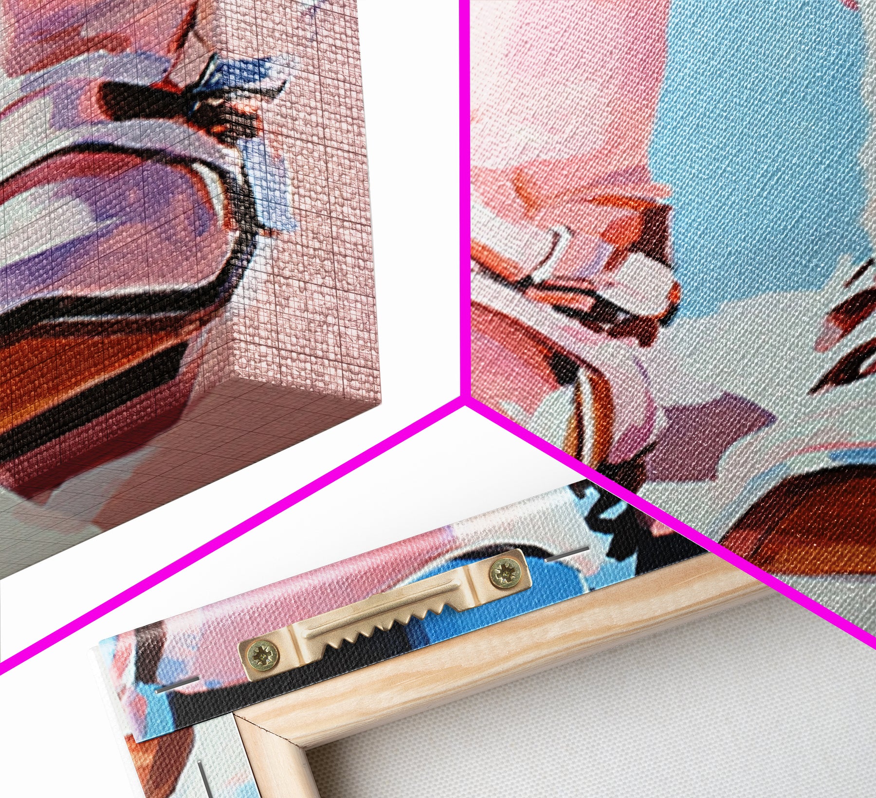 *Optional frames add a total of 1.5 inches to each dimension, for example a 10x20 canvas with a frame will be 11.5 by 21.5 inches total. All framed canvas are 1.5" total depth.