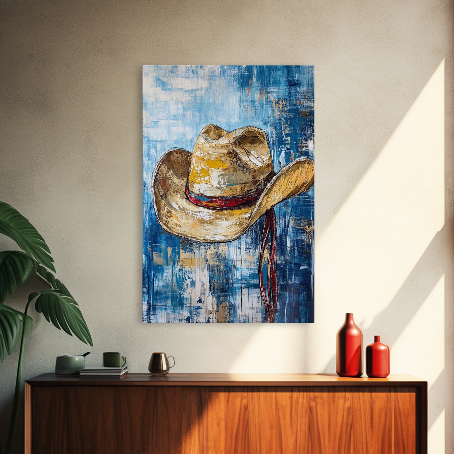 Cowboy Hat, Western Decor, Rustic Wall Art, Coastal Cowgirl Wall Art, Canvas Print, Gift Idea For Him, Farmhouse Art, Bedroom Art