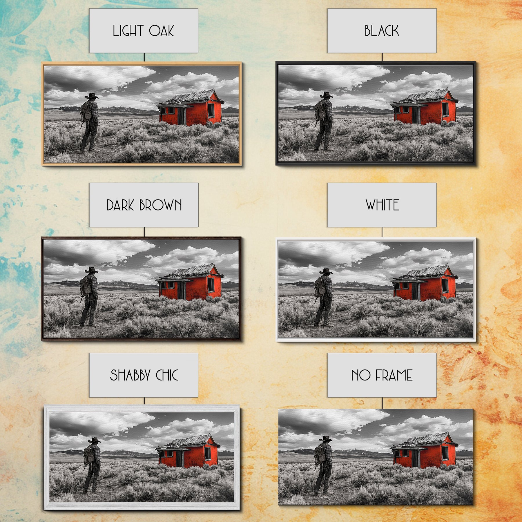 *Optional frames add a total of 1.5 inches to each dimension, for example a 10x20 canvas with a frame will be 11.5 by 21.5 inches total. All framed canvas are 1.5" total depth.