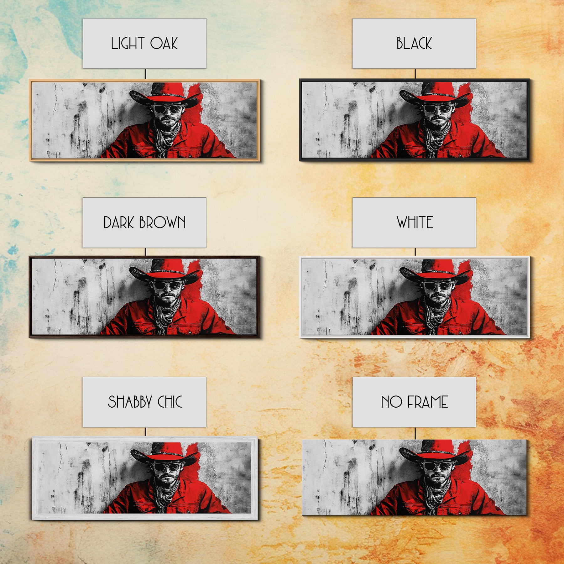 *Optional frames add a total of 1.5 inches to each dimension, for example a 10x20 canvas with a frame will be 11.5 by 21.5 inches total. All framed canvas are 1.5" total depth.