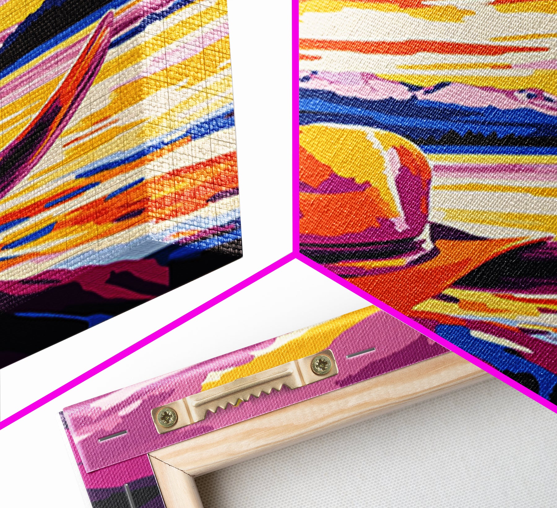 Hello and thank you for taking the time to view our modern high quality giclée artwork! We offer both posters and stretched canvas prints. Our posters are printed on Ultra Matte 60 lb / 230 GSM high quality photo paper, with a thickness of 10 mil. Our canvases are printed on museum grade 350 GSM canvas material with ECO friendly archival grade ink, then hand stretched and stapled over premium, FSC certified and shrink resistant frames. Designed and built to last a lifetime.