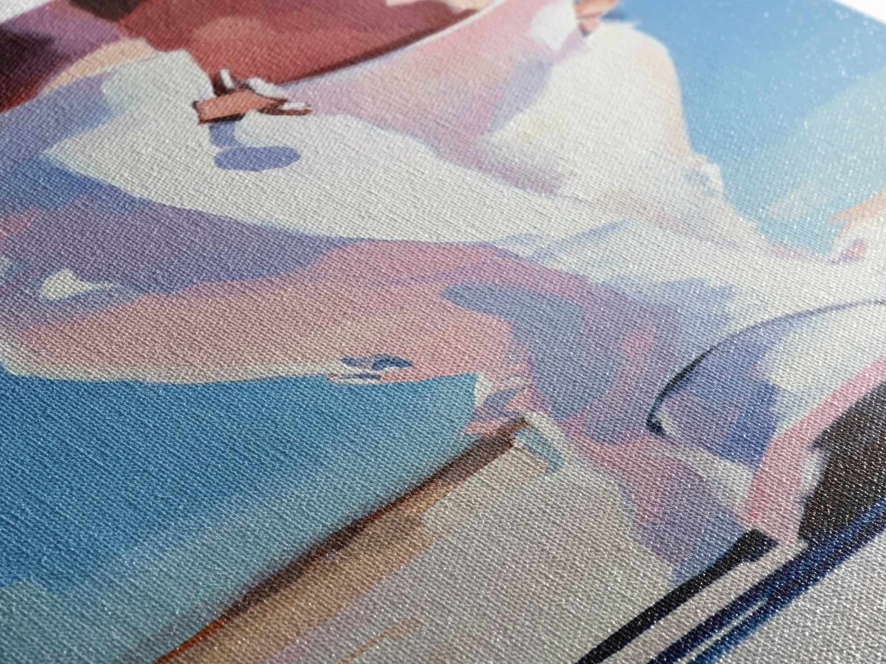 Most of our canvases are made in the USA, with the exception of canvases ordered with the light oak unstained frames, and any large canvases (24x48, 30x60, 16x48 and 20x60) ordered WITH a frame. These are temporarily made in and shipped from Europe, while we try to find a more consistent supplier in the USA.