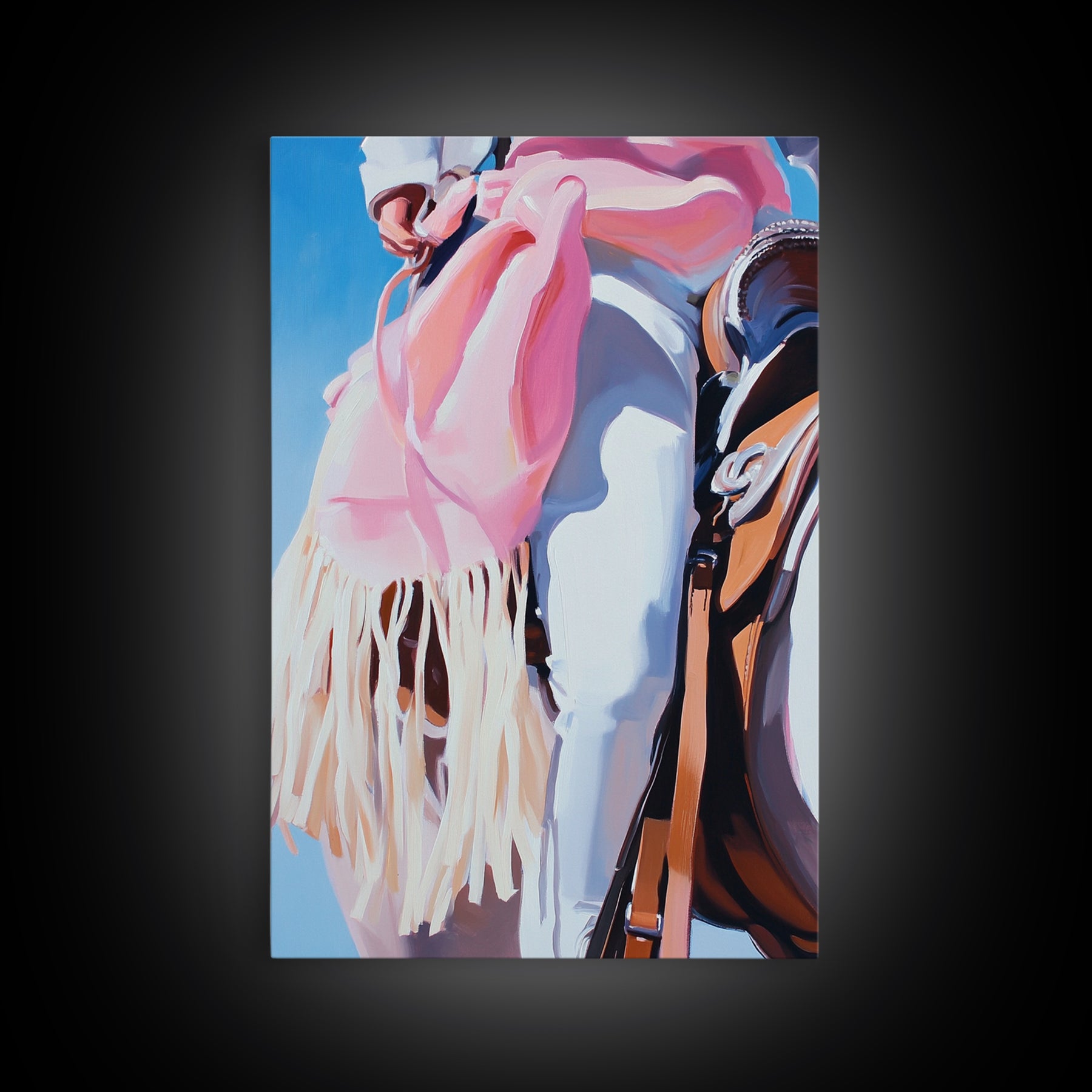 Cowgirl riding gear, western wall art, rustic decor, pink orange wall art, framed canvas print, cowboy decor, southwest wall art