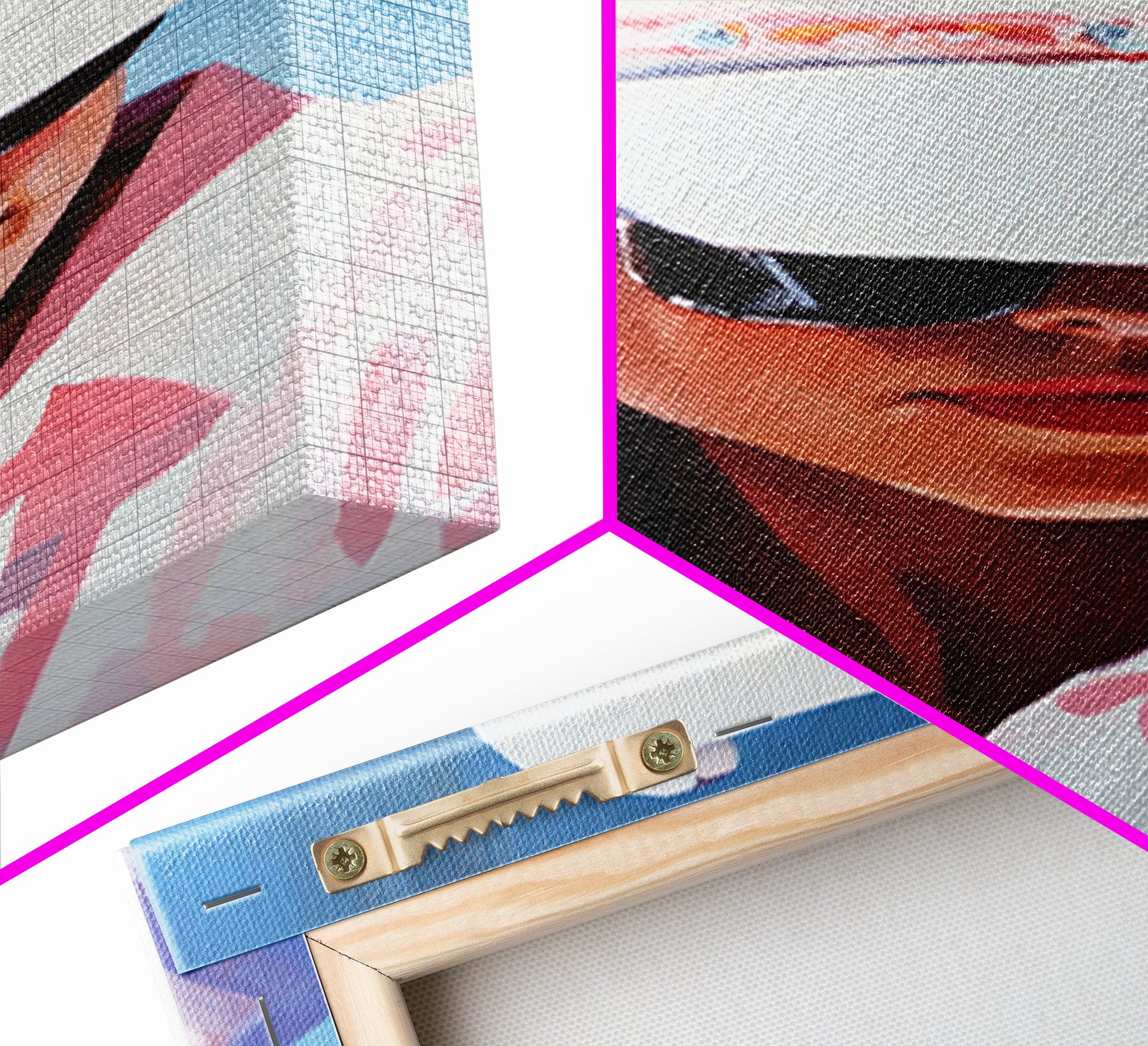 Hello and thank you for taking the time to view our modern high quality giclée artwork! We offer both posters and stretched canvas prints. Our posters are printed on Ultra Matte 60 lb / 230 GSM high quality photo paper, with a thickness of 10 mil. Our canvases are printed on museum grade 350 GSM canvas material with ECO friendly archival grade ink, then hand stretched and stapled over premium, FSC certified and shrink resistant frames. Designed and built to last a lifetime.