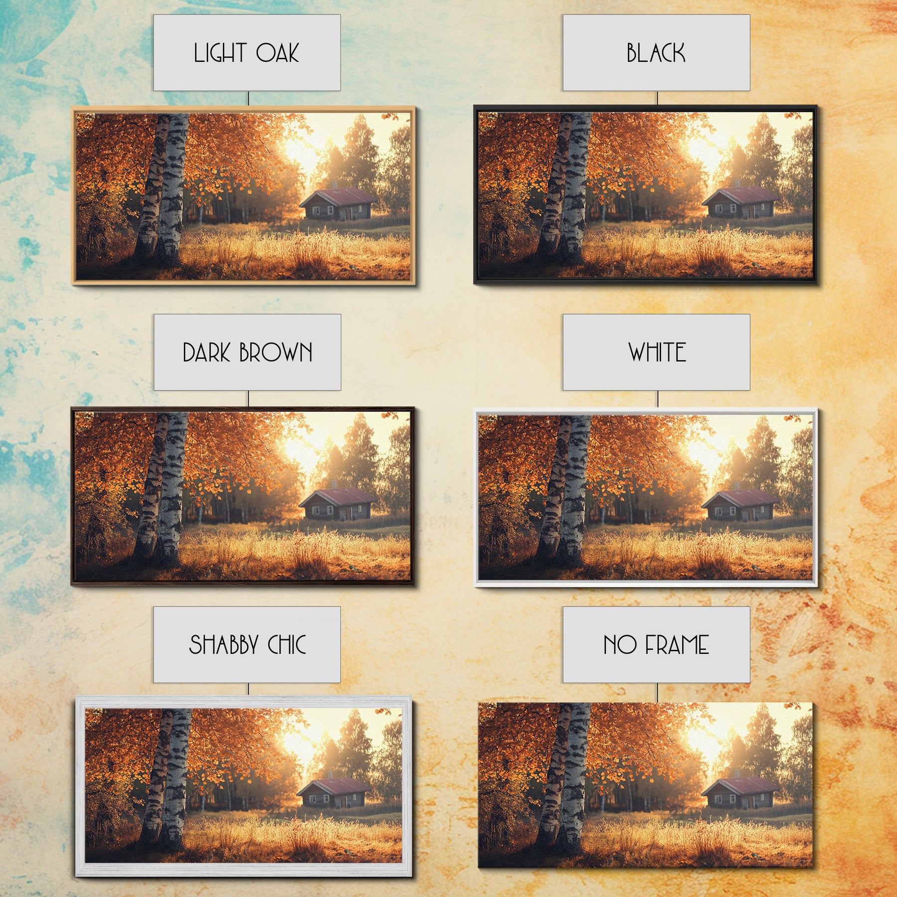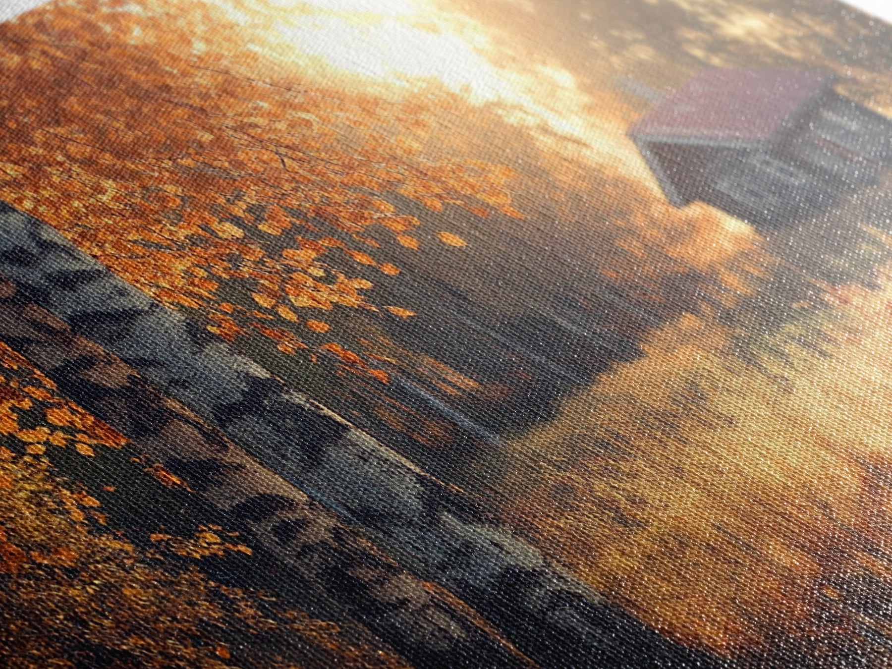 Cozy Autumn Cabin Framed Canvas Print with Fall Landscape Painting and Farmhouse Art Above Couch Art Living Room Rustic Decor