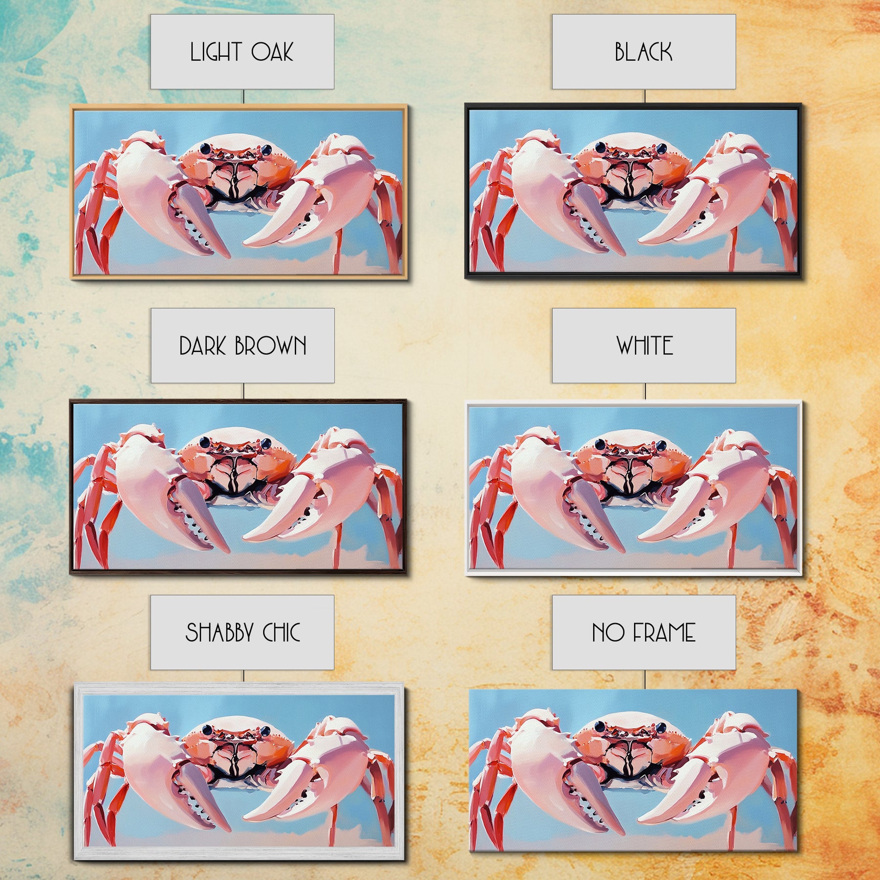 Crab Illustration, Ocean Life, Coastal Kitchen, Beach House Wall Art, Canvas Print, Nautical Artwork, Seaside Aesthetic, Marine Art