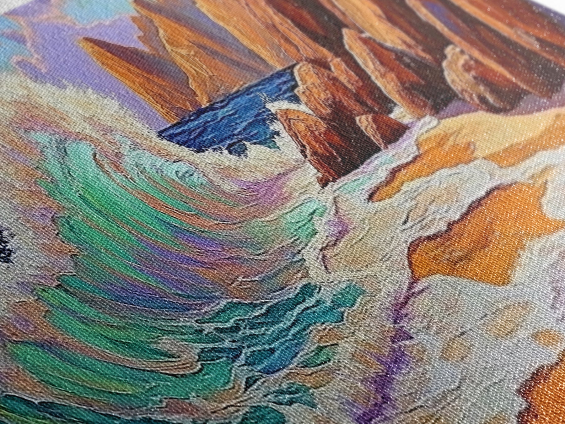Most of our canvases are made in the USA, with the exception of canvases ordered with the light oak unstained frames, and any large canvases (24x48, 30x60, 16x48 and 20x60) ordered WITH a frame. These are temporarily made in and shipped from Europe, while we try to find a more consistent supplier in the USA.