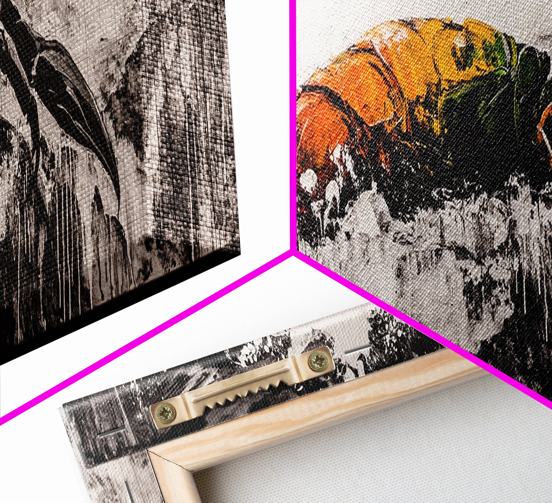 Hello and thank you for taking the time to view our modern high quality giclée artwork! We offer both posters and stretched canvas prints. Our posters are printed on Ultra Matte 60 lb / 230 GSM high quality photo paper, with a thickness of 10 mil. Our canvases are printed on museum grade 350 GSM canvas material with ECO friendly archival grade ink, then hand stretched and stapled over premium, FSC certified and shrink resistant frames. Designed and built to last a lifetime.