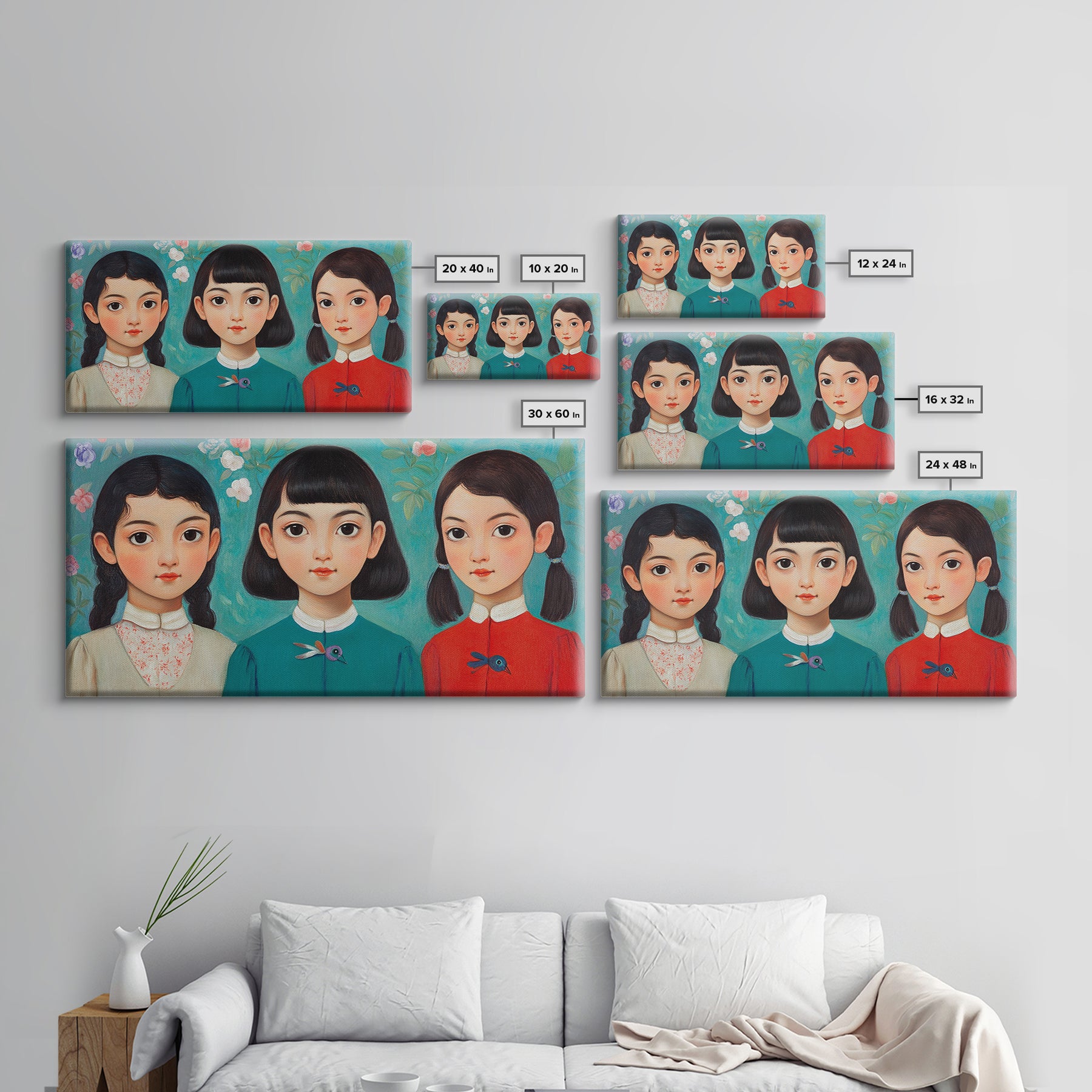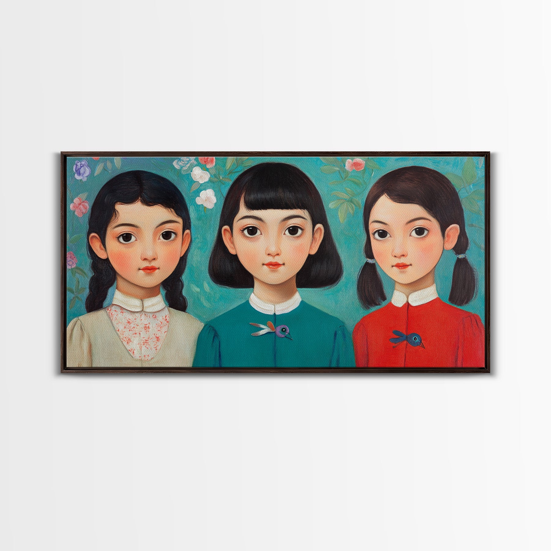 Creepy Wall Art Framed Canvas Print, Liminal Art, Liminal Spaces, Creepy Ghost Girls Painting