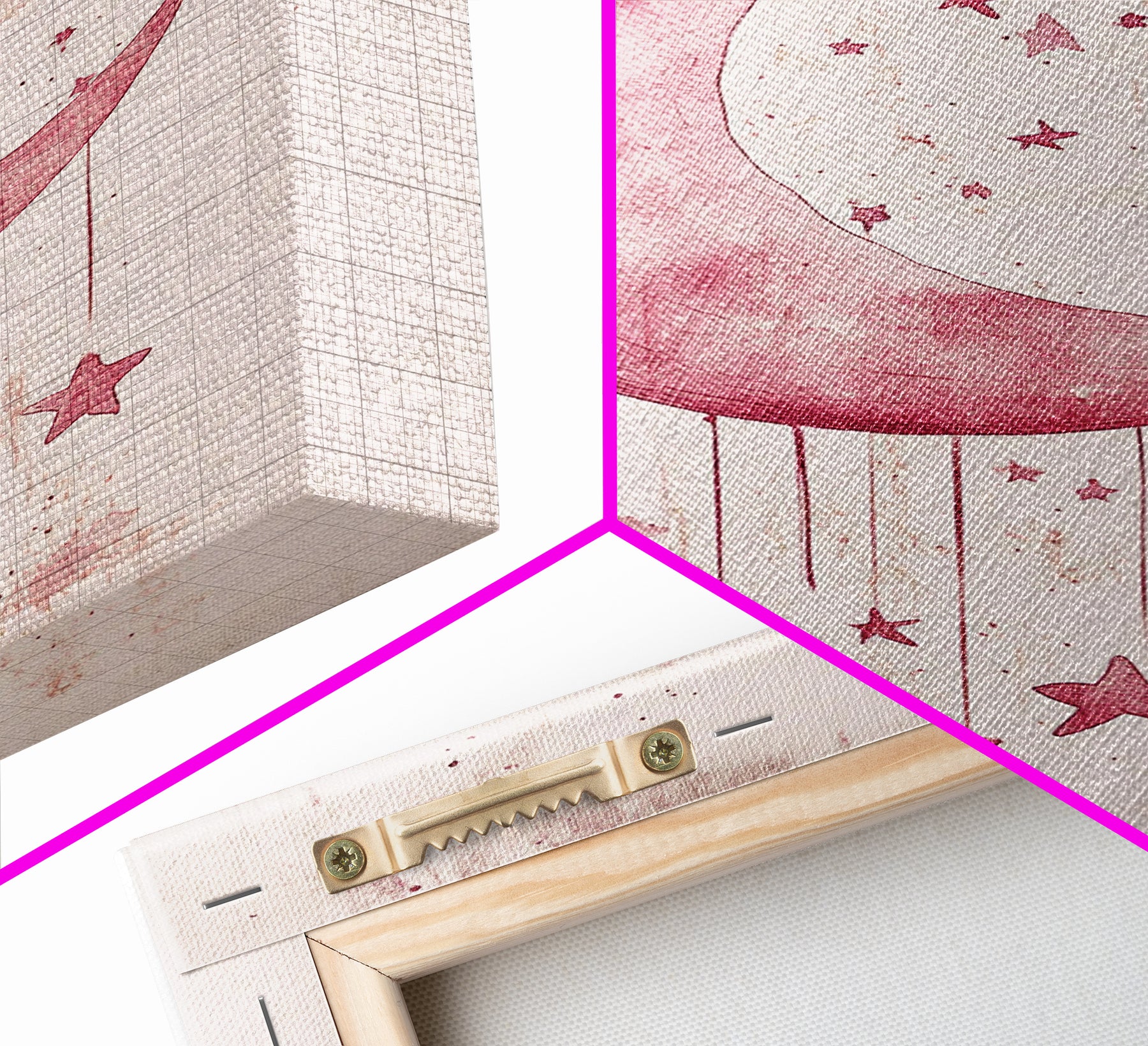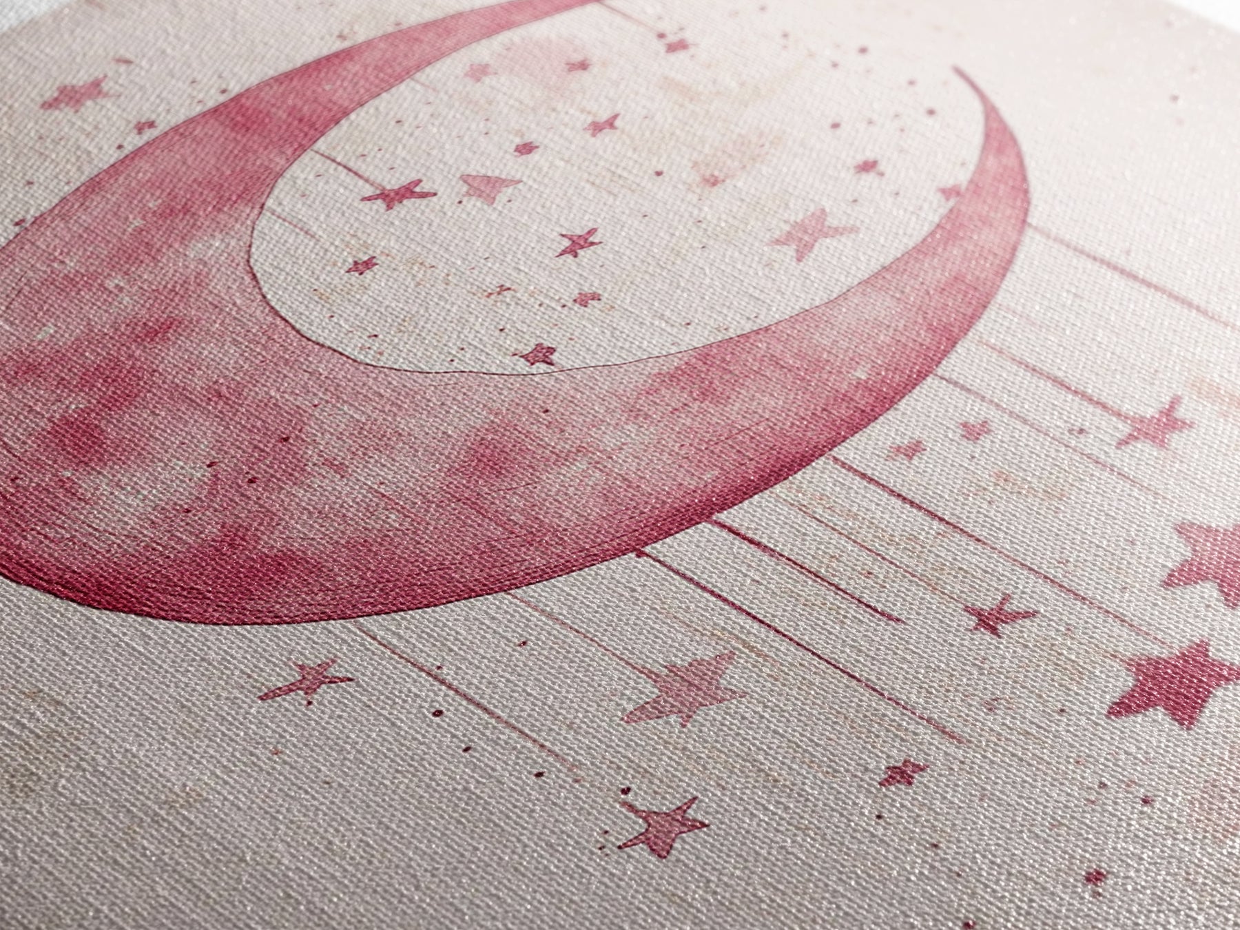 Crescent Moon and Stars Framed Canvas Print Mystical Boho Art Zen Wall Art Light Pink Wall Art Bedroom Art Dreamy Night Sky Decor