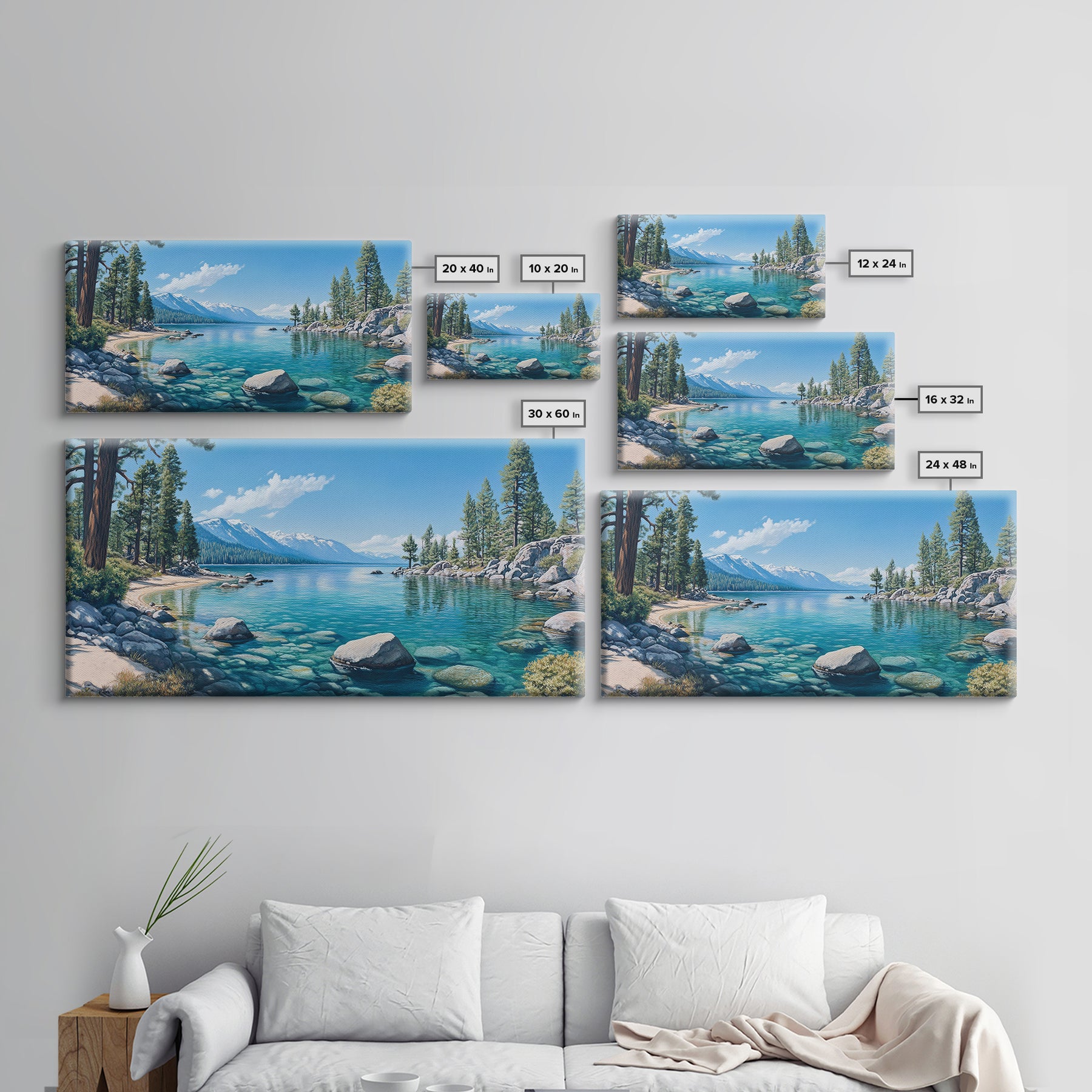 Crystal Clear Lake Canvas Print Lake Tahoe Art Coastal Landscape Artwork Bedroom Decor Horizontal Wall Art Nature Painting Original