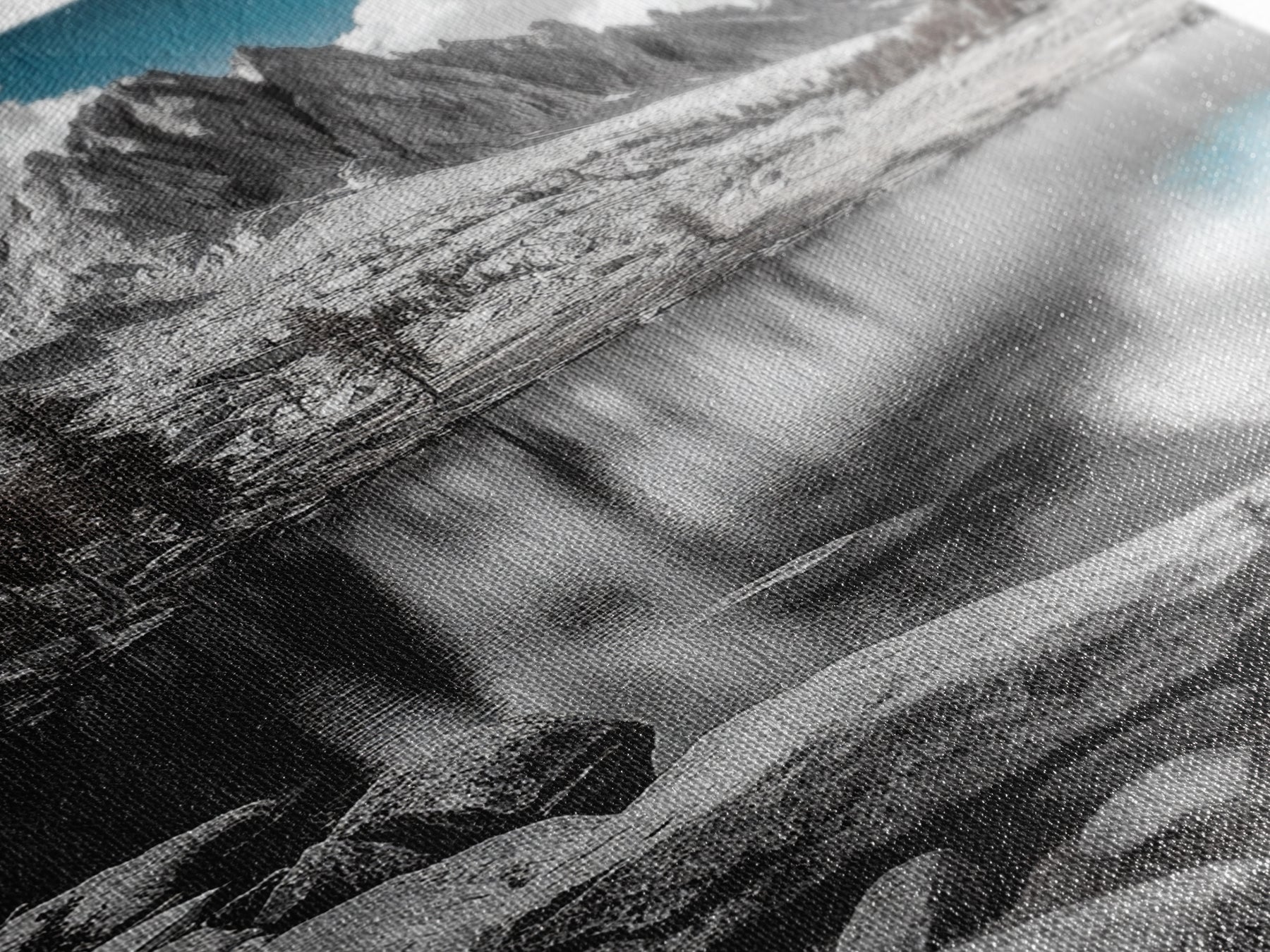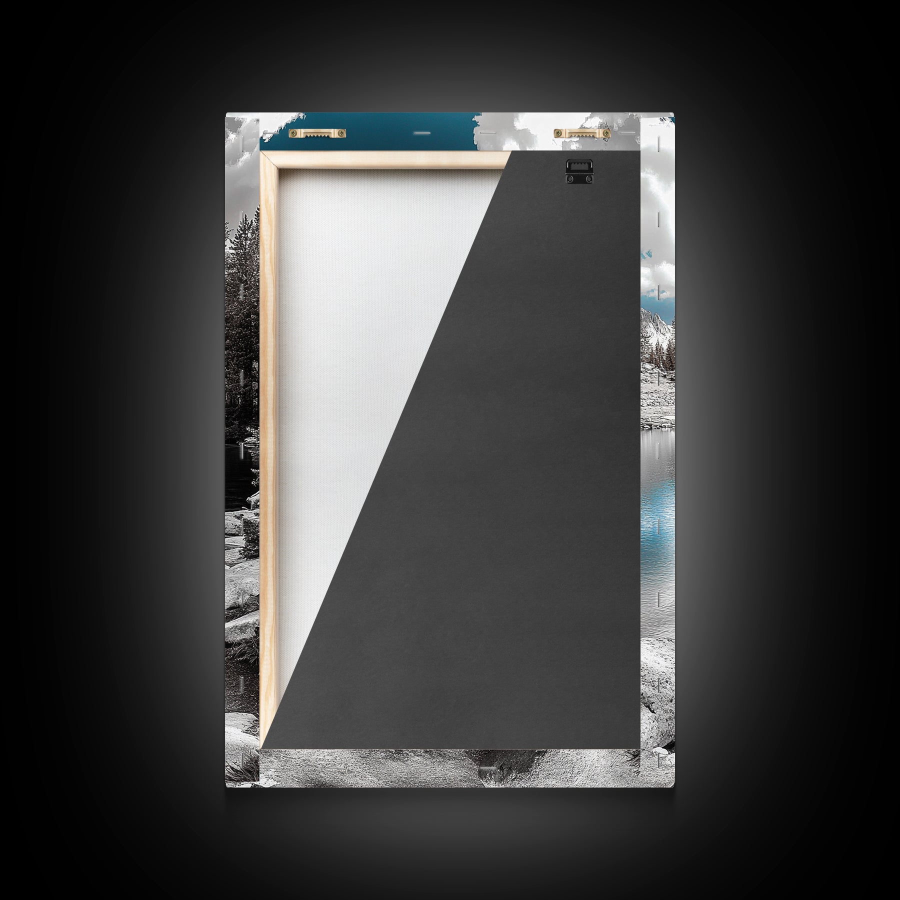 Crystal Lake Peaks, Serene Mountain Reflection, Monochrome Water Scene, Canvas Print, Bedroom Wall Art, Nature Photography Decor