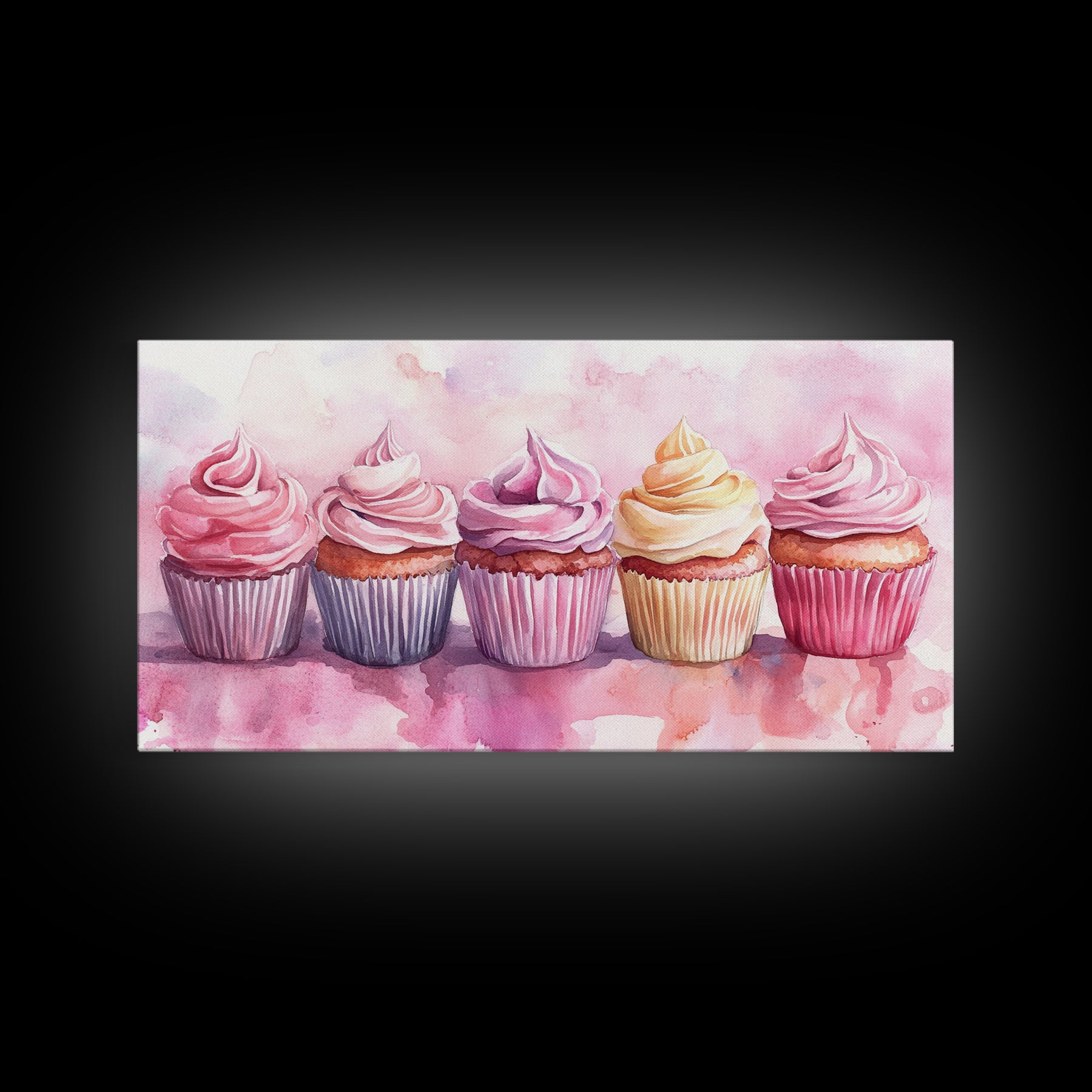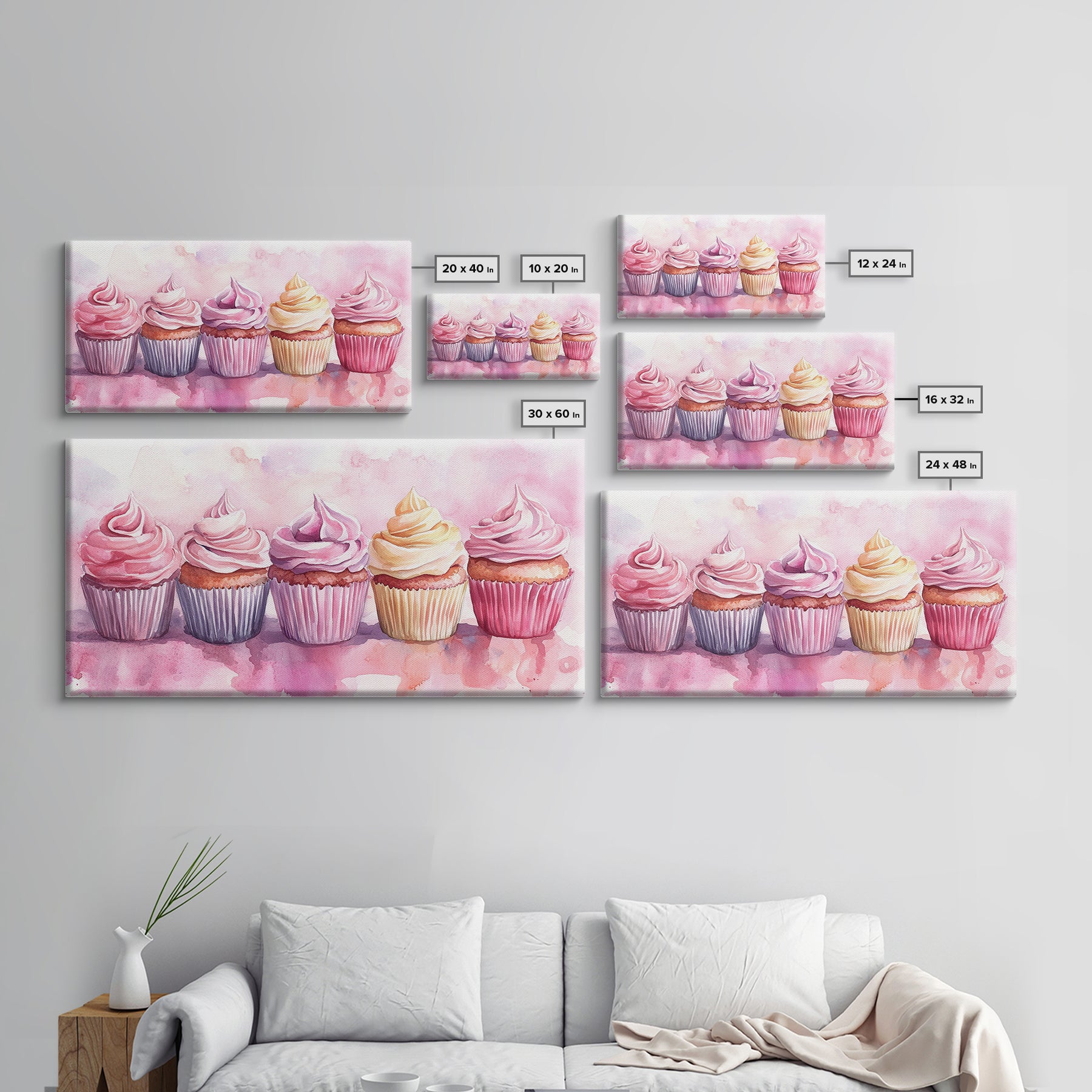 Cupcake Row Canvas Print | Whimsical Sweet Treats Wall Art | Kitchen Dessert Artwork | Pastel Food Lover's Decor | Light Pink Whimsical Art
