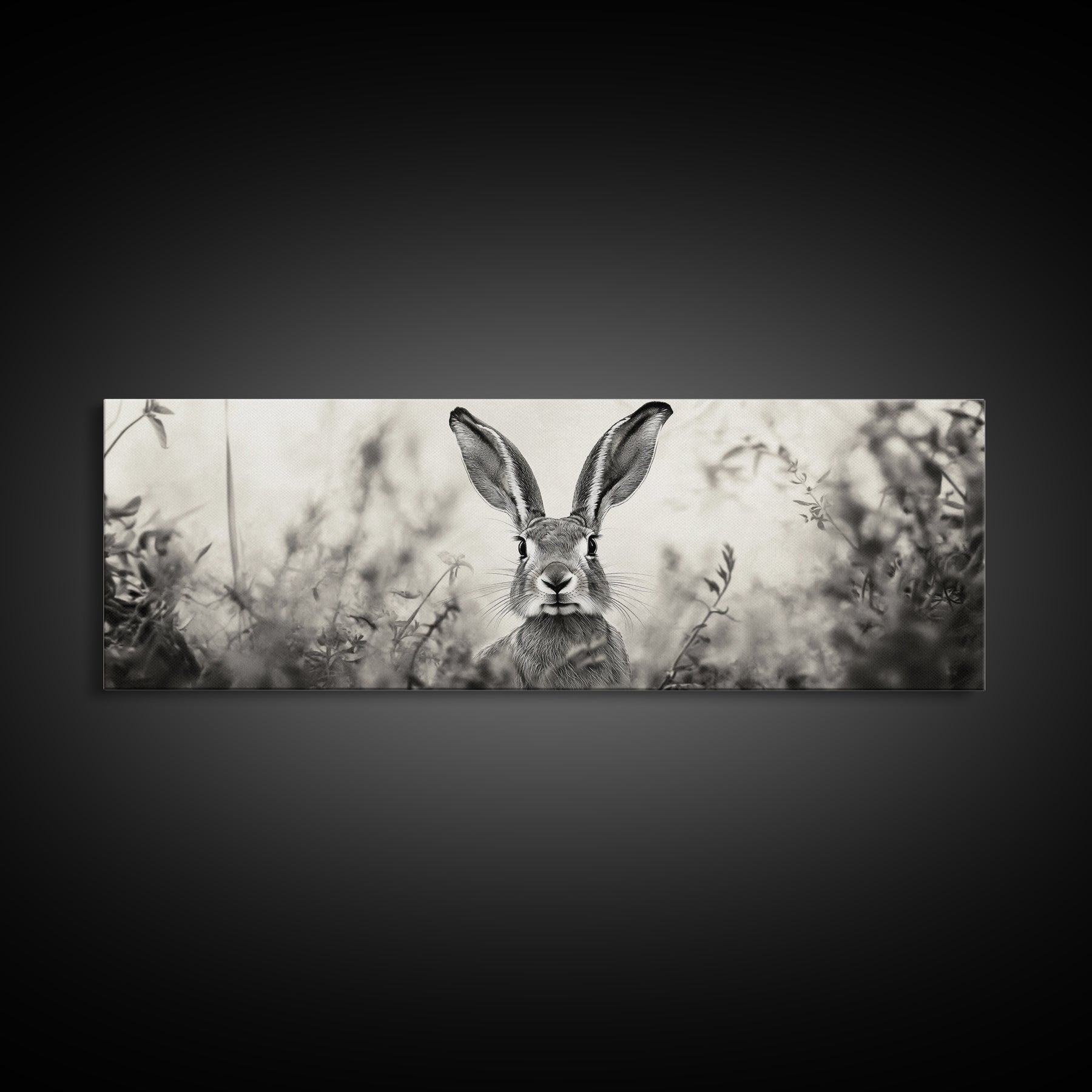 Curious Rabbit, Meadow Watch, Nature Close-Up, Canvas Print, Farmhouse animal art, Nursery decor, Whimsical wildlife, Woodland home touch