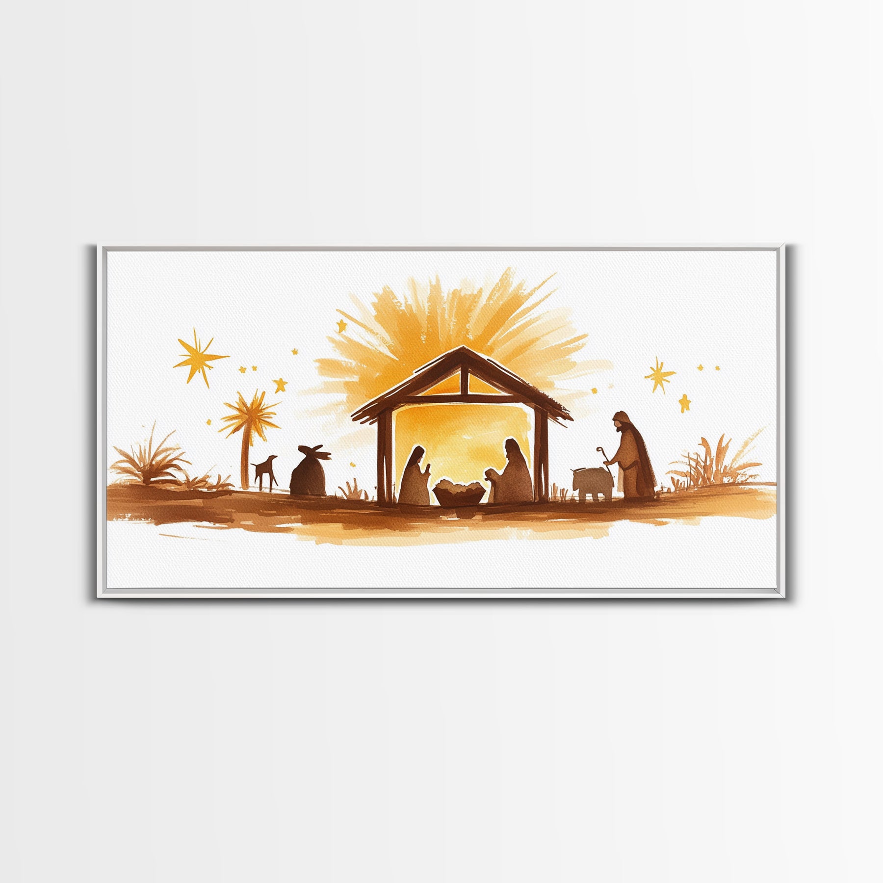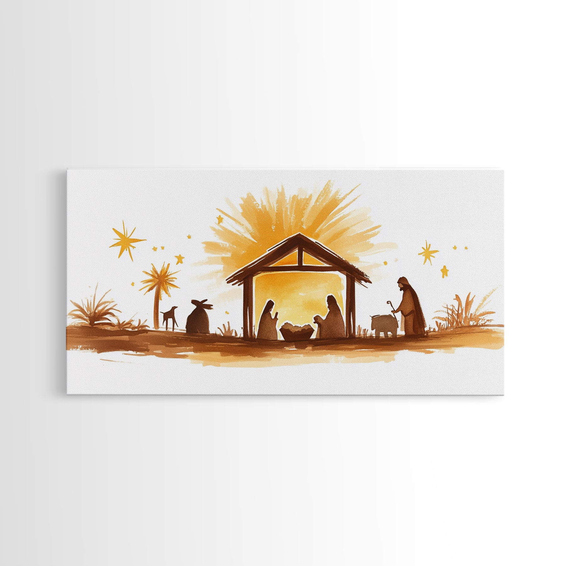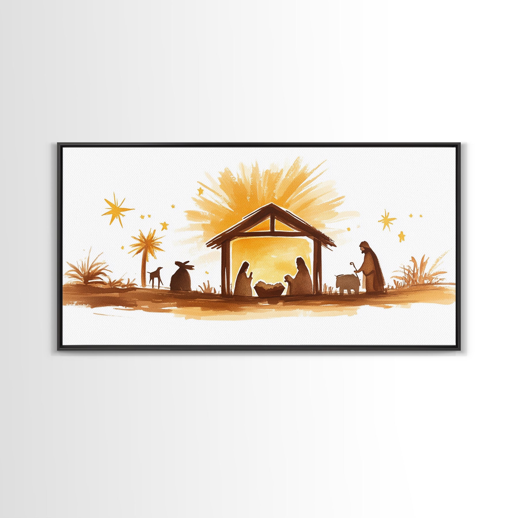 Cute Nativity Watercolor Painting Canvas Print - Framed Wall Art - Ready To Hang - Christmas Nativity Centerpiece Wall Art