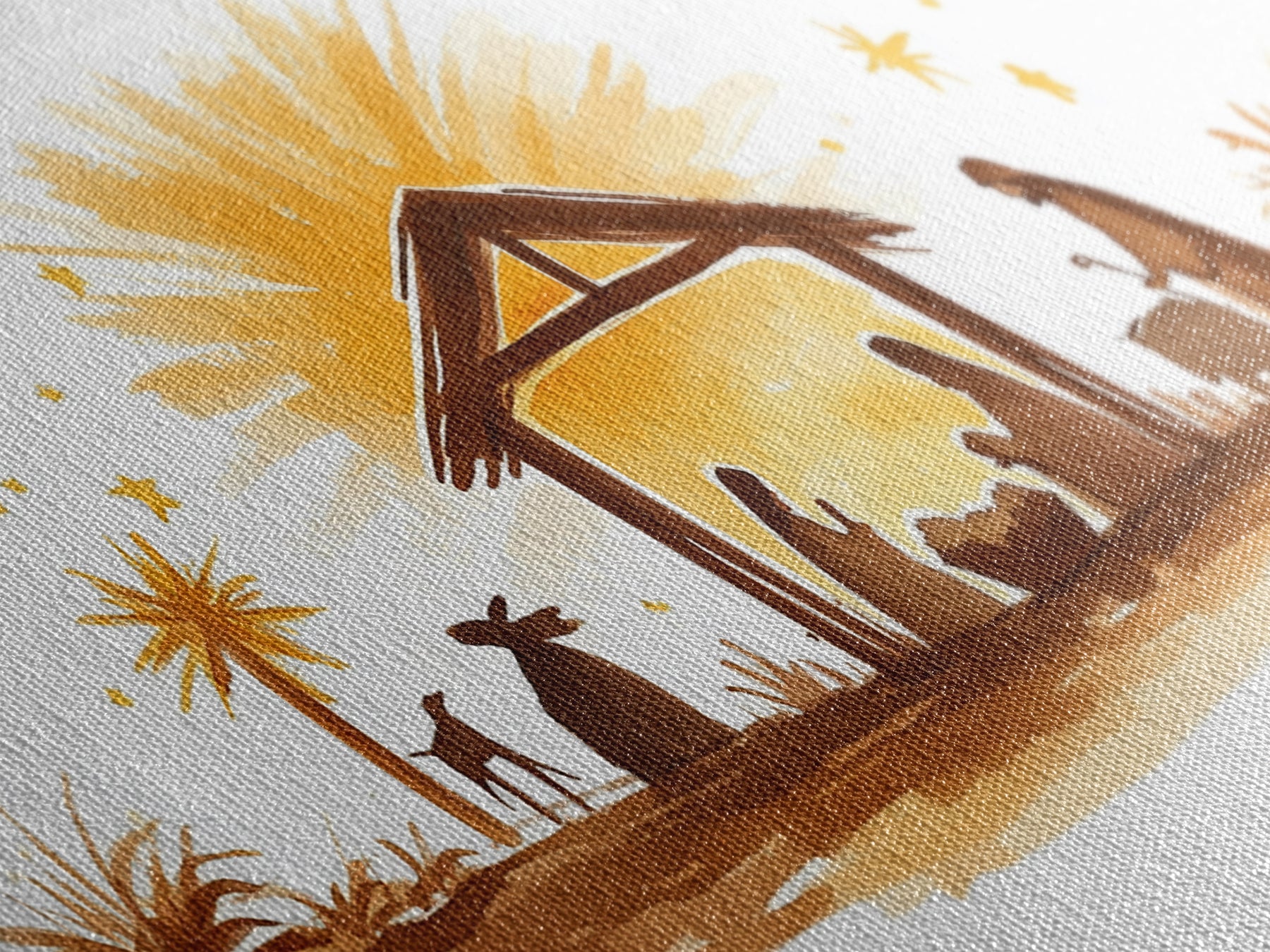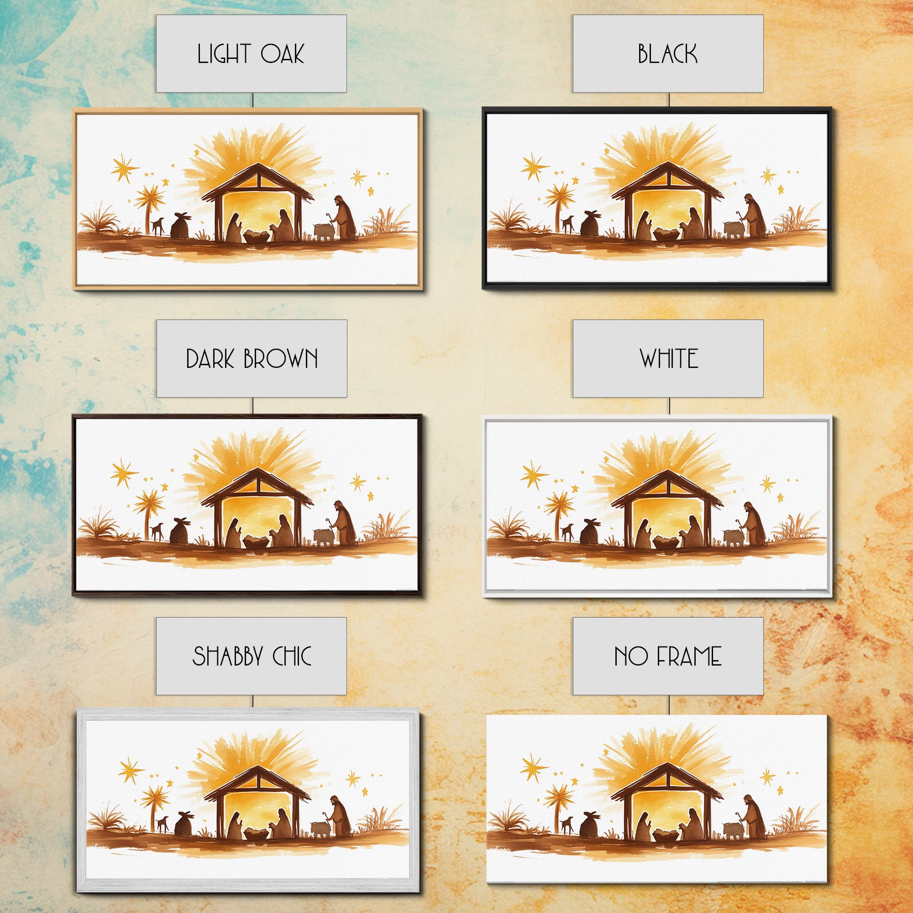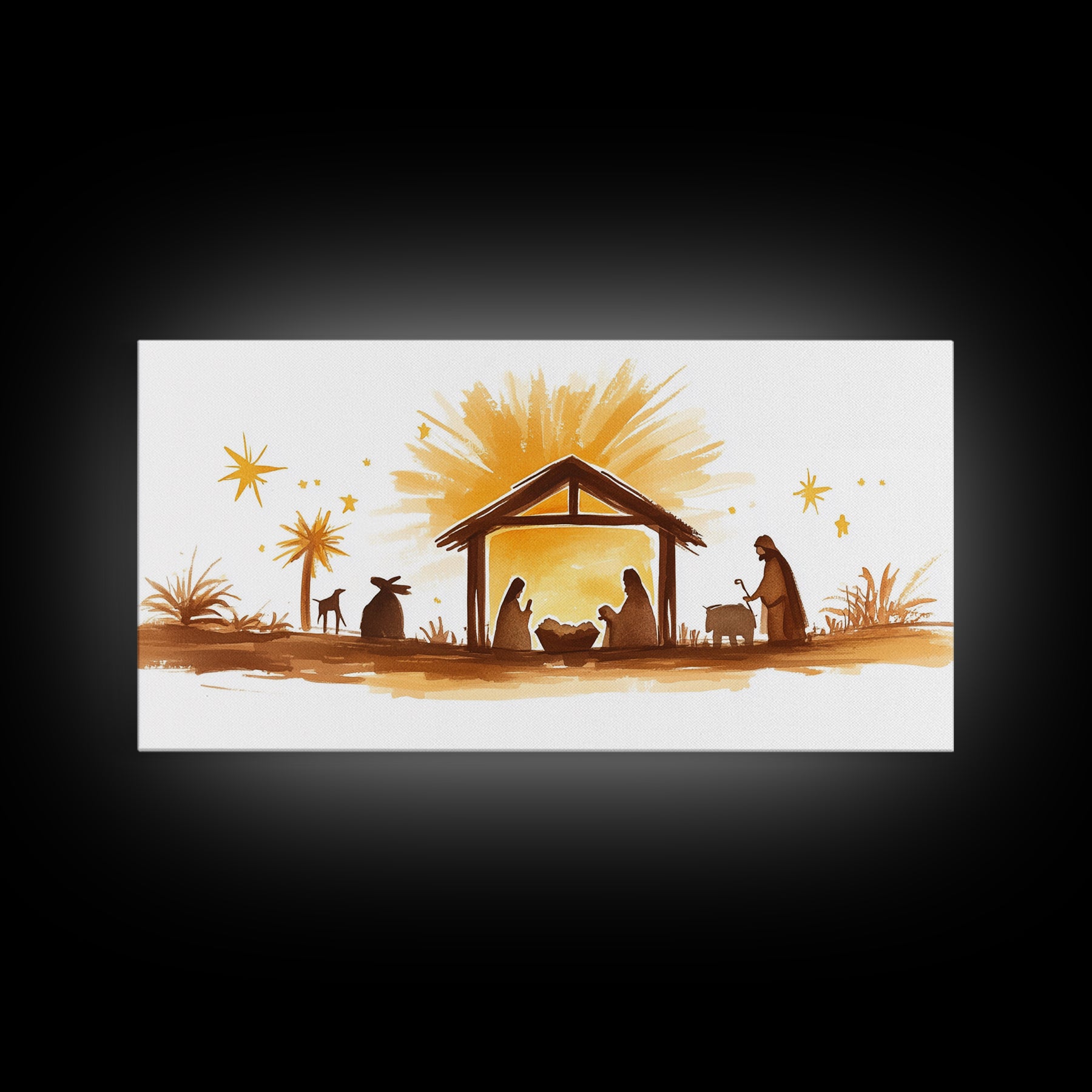 Cute Nativity Watercolor Painting Canvas Print - Framed Wall Art - Ready To Hang - Christmas Nativity Centerpiece Wall Art