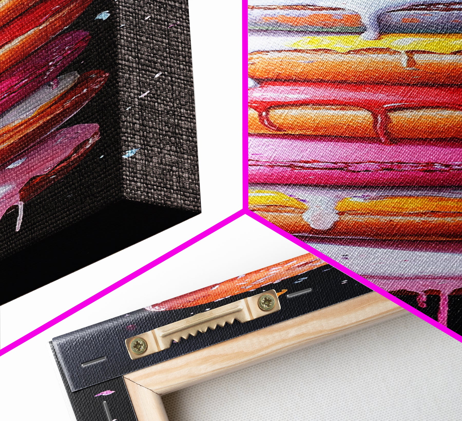 Cute Oil Painting Print of Macaroons - Kitchen Wall Art - Kitchen Decor - Framed Canvas Print - Preppy Kitchen Art - Girly Decor - Food Painting