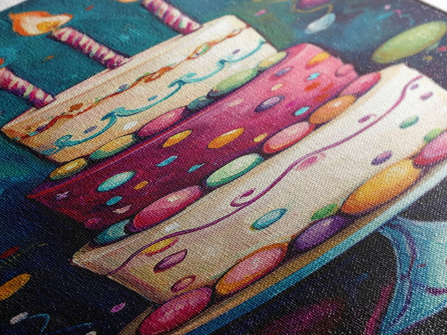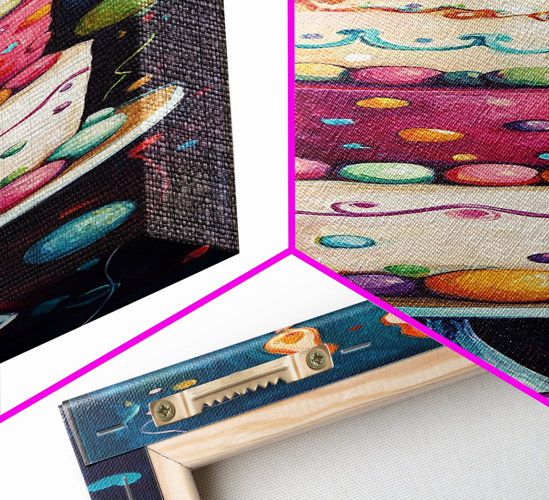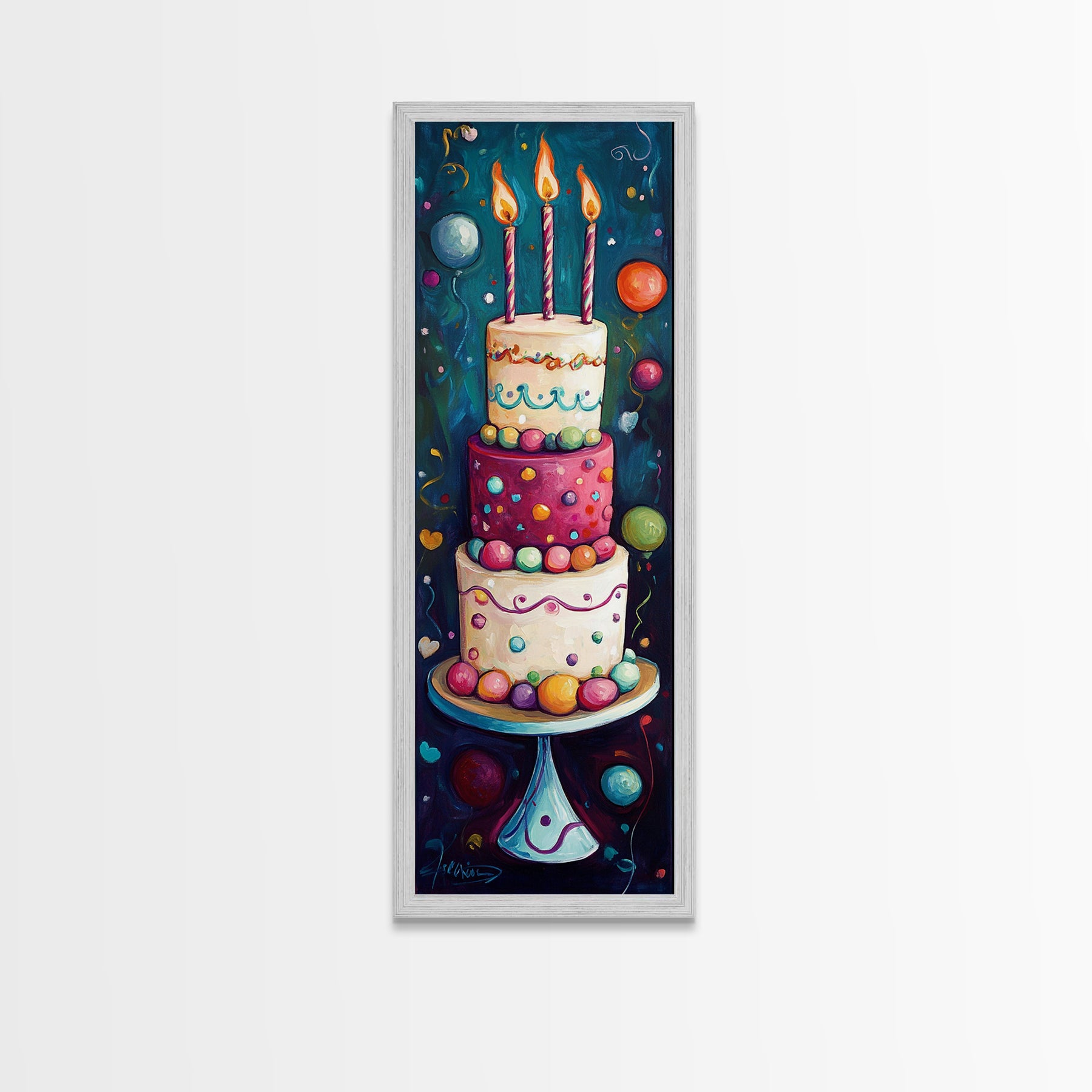 Cute Painting Print of a Birthday Cake - Framed Canvas - Preppy Dorm Room Decor - Wedding Decor - Birthday Cake Wall Art - Kitchen Decor