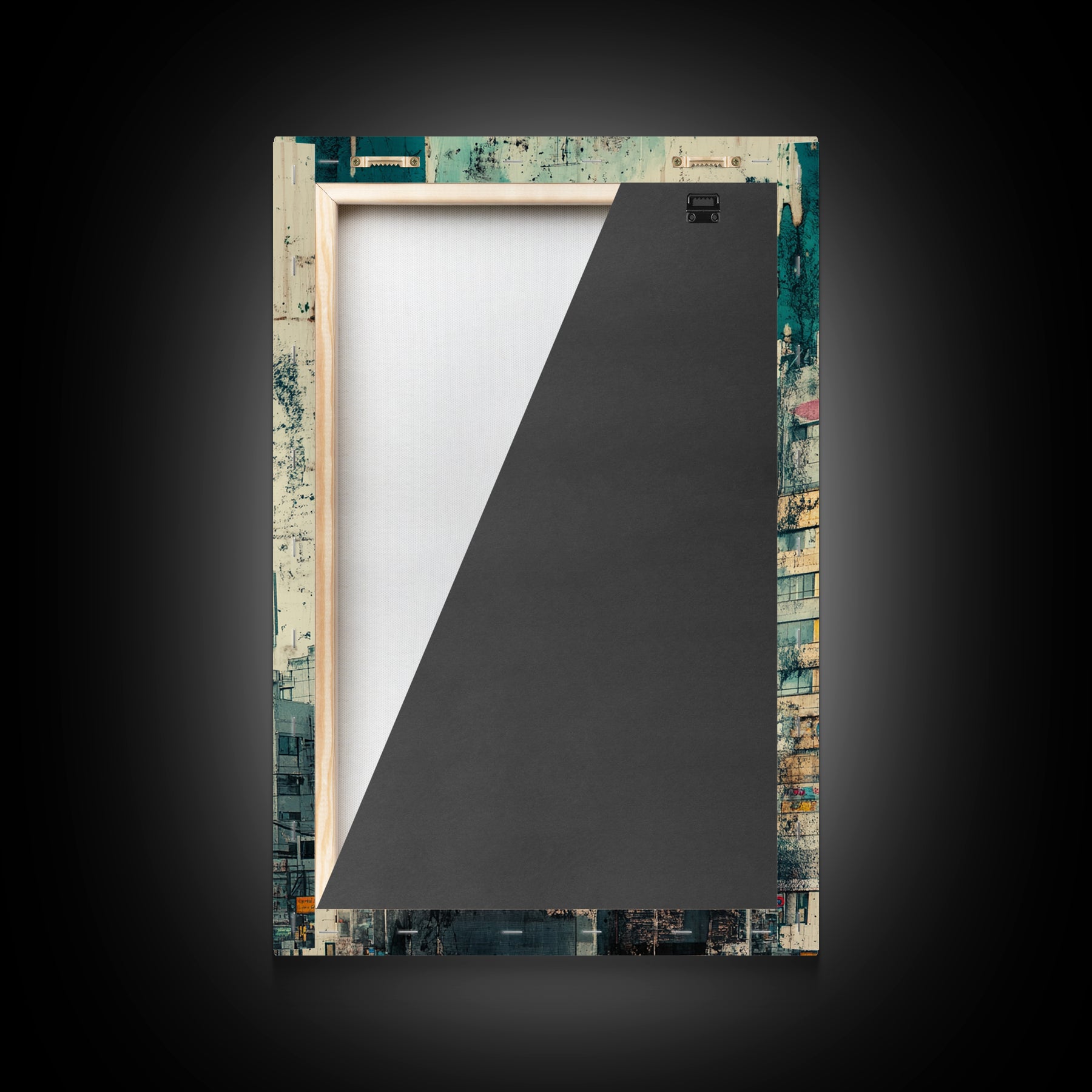Cyberpunk Style Retro-Futurism Wall Art, Framed Canvas Print, Cyber Punk Home Decor, Cityscape Art