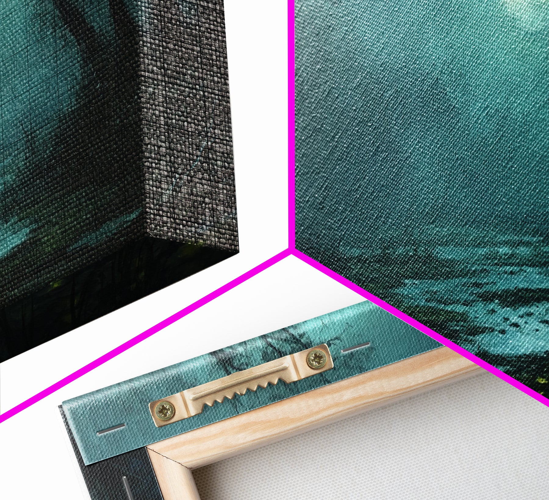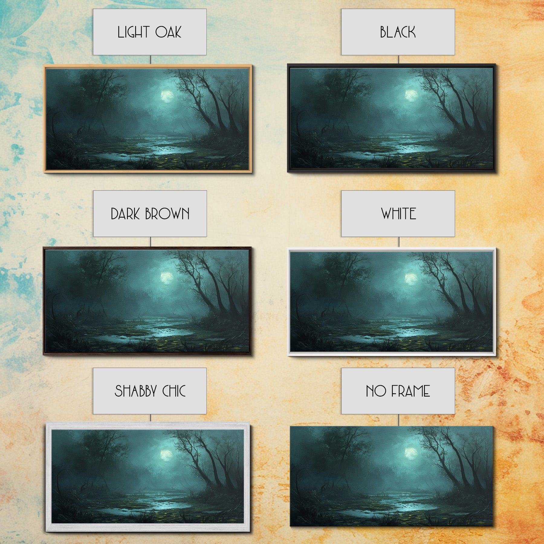 Dark and Moody Wall Art Framed Canvas Print, Oil Painting of a Swamp, Moody Landscape Wall Art
