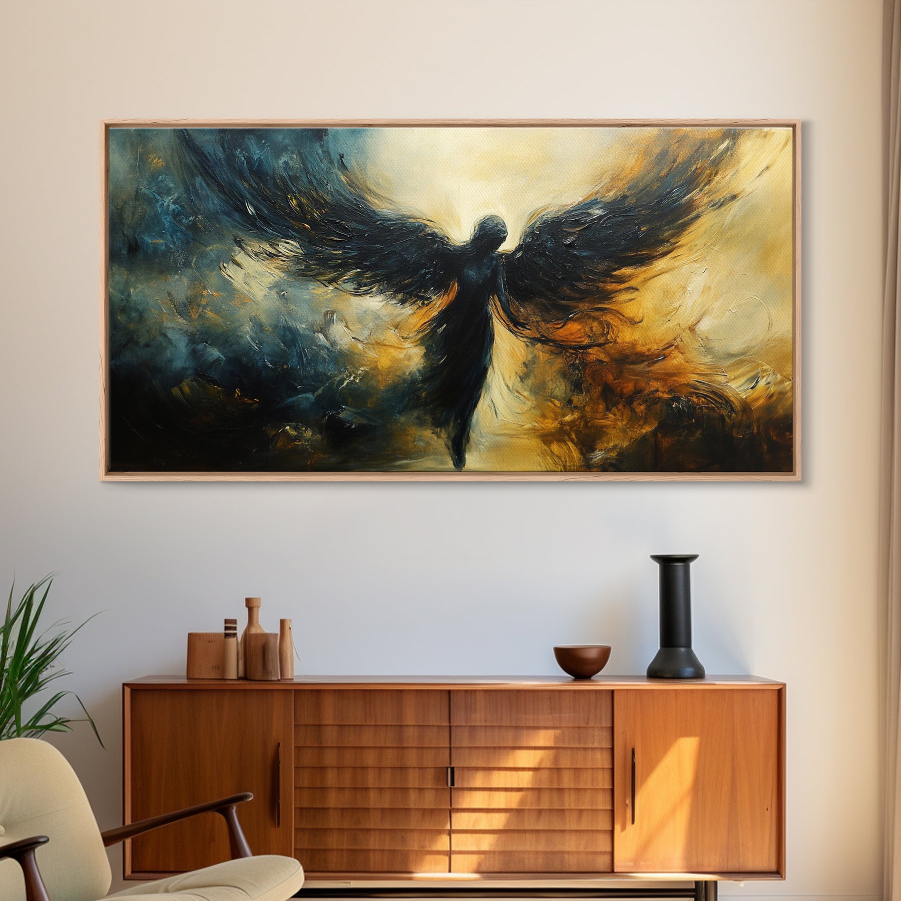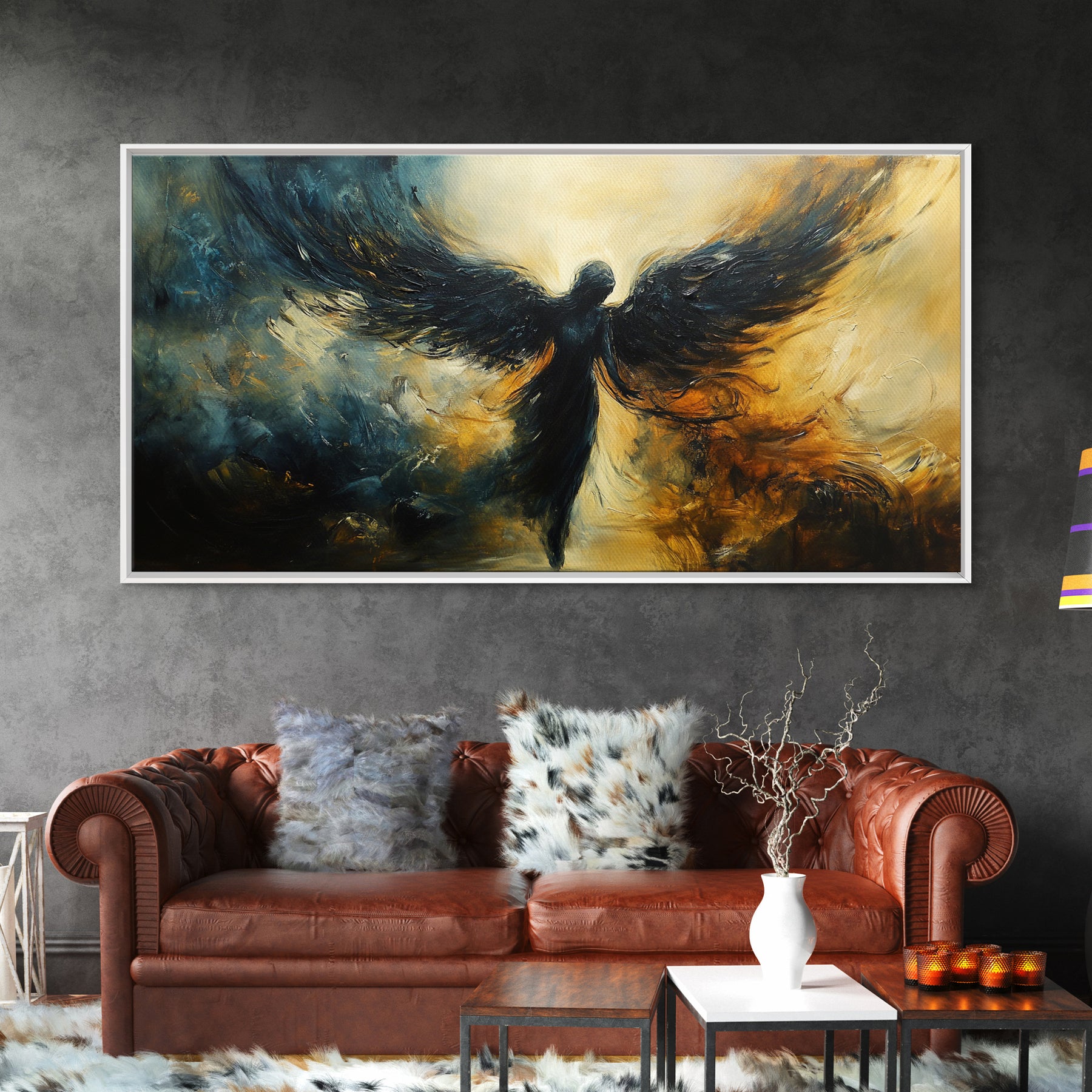 Dark Angel Framed Canvas Print with Moody Art and Dark Angels Wall Art Perfect Gothic Bedroom or Living Room Statement Piece