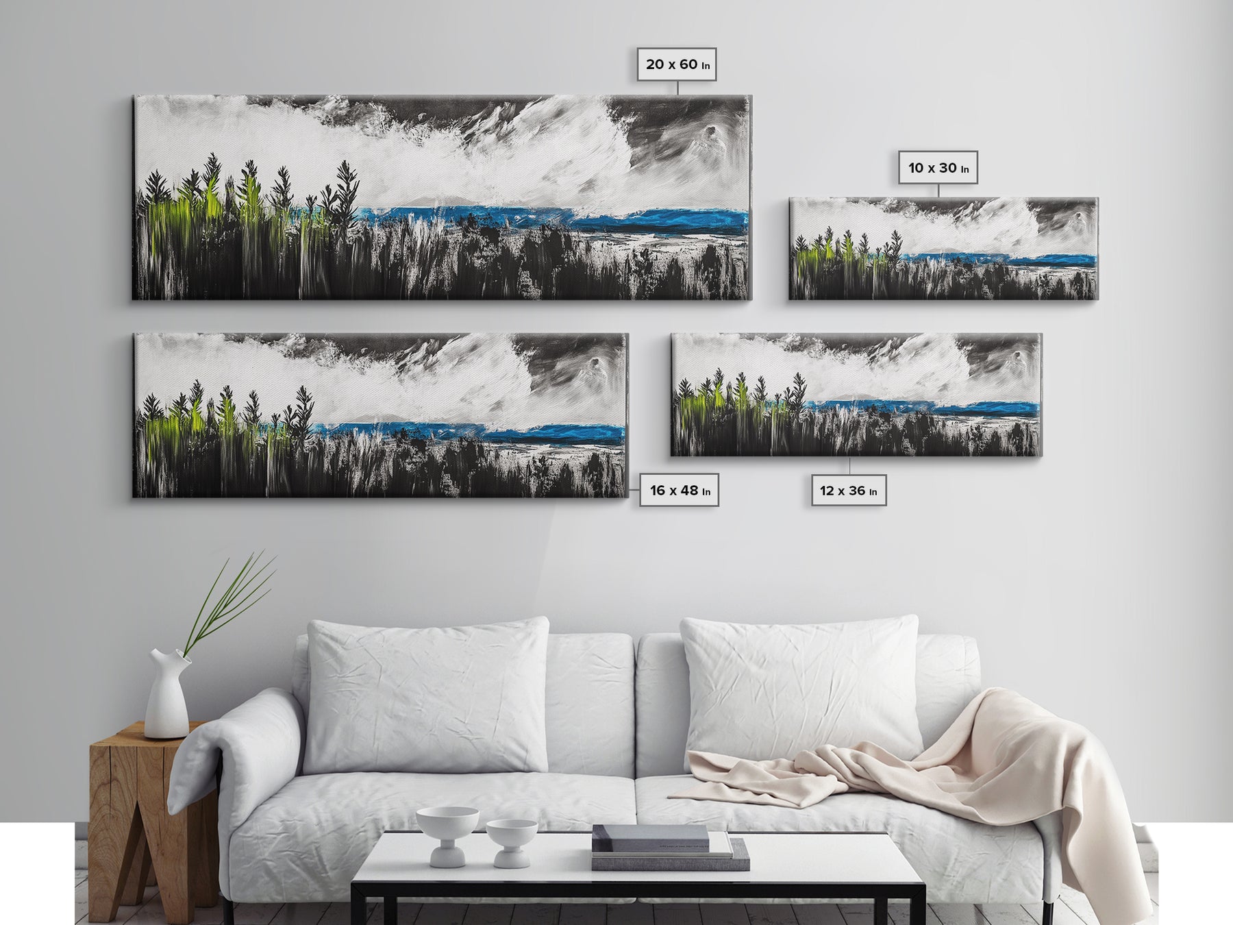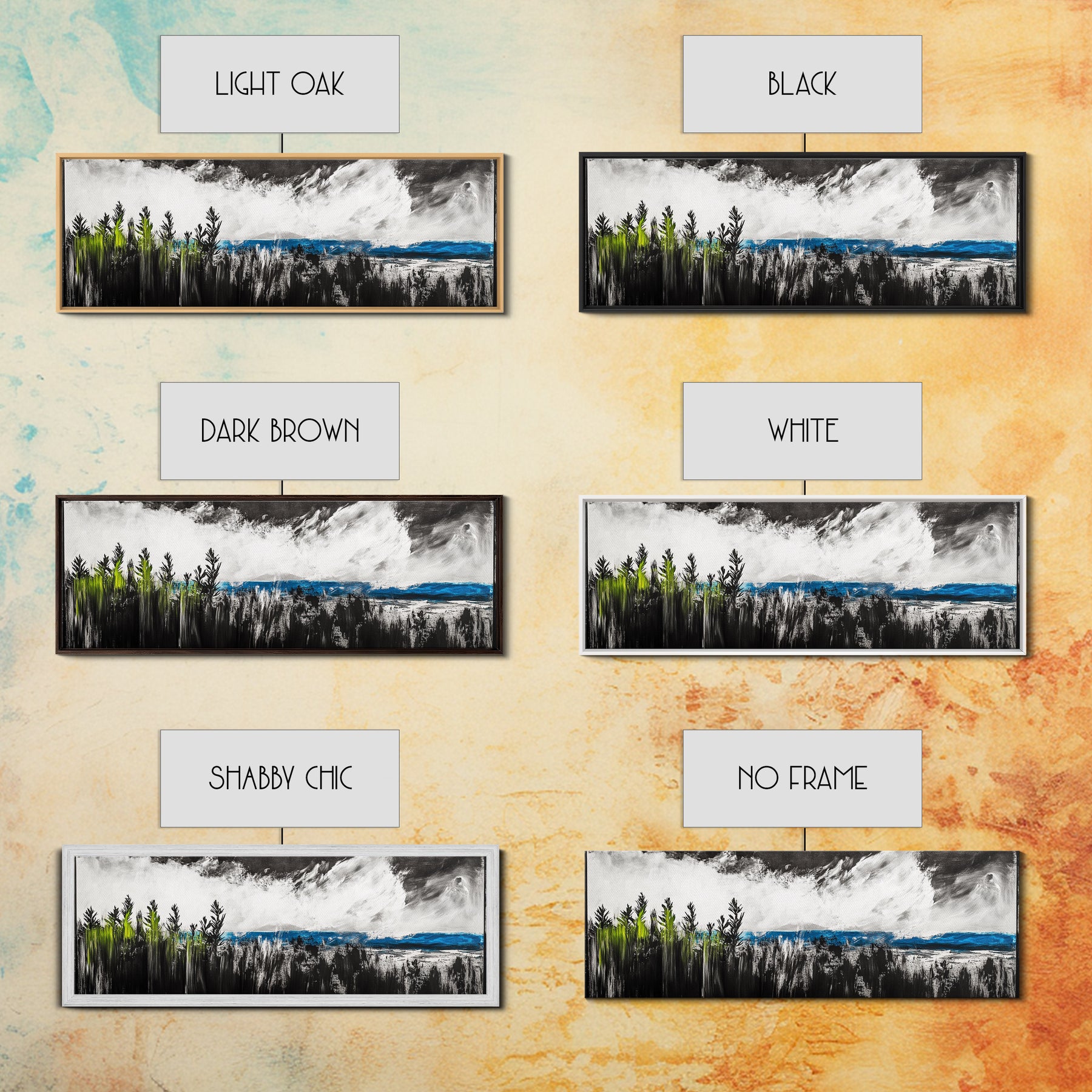 *Optional frames add a total of 1.5 inches to each dimension, for example a 10x20 canvas with a frame will be 11.5 by 21.5 inches total. All framed canvas are 1.5" total depth.