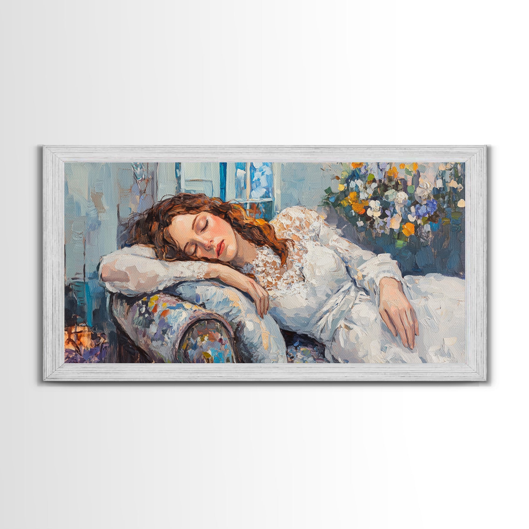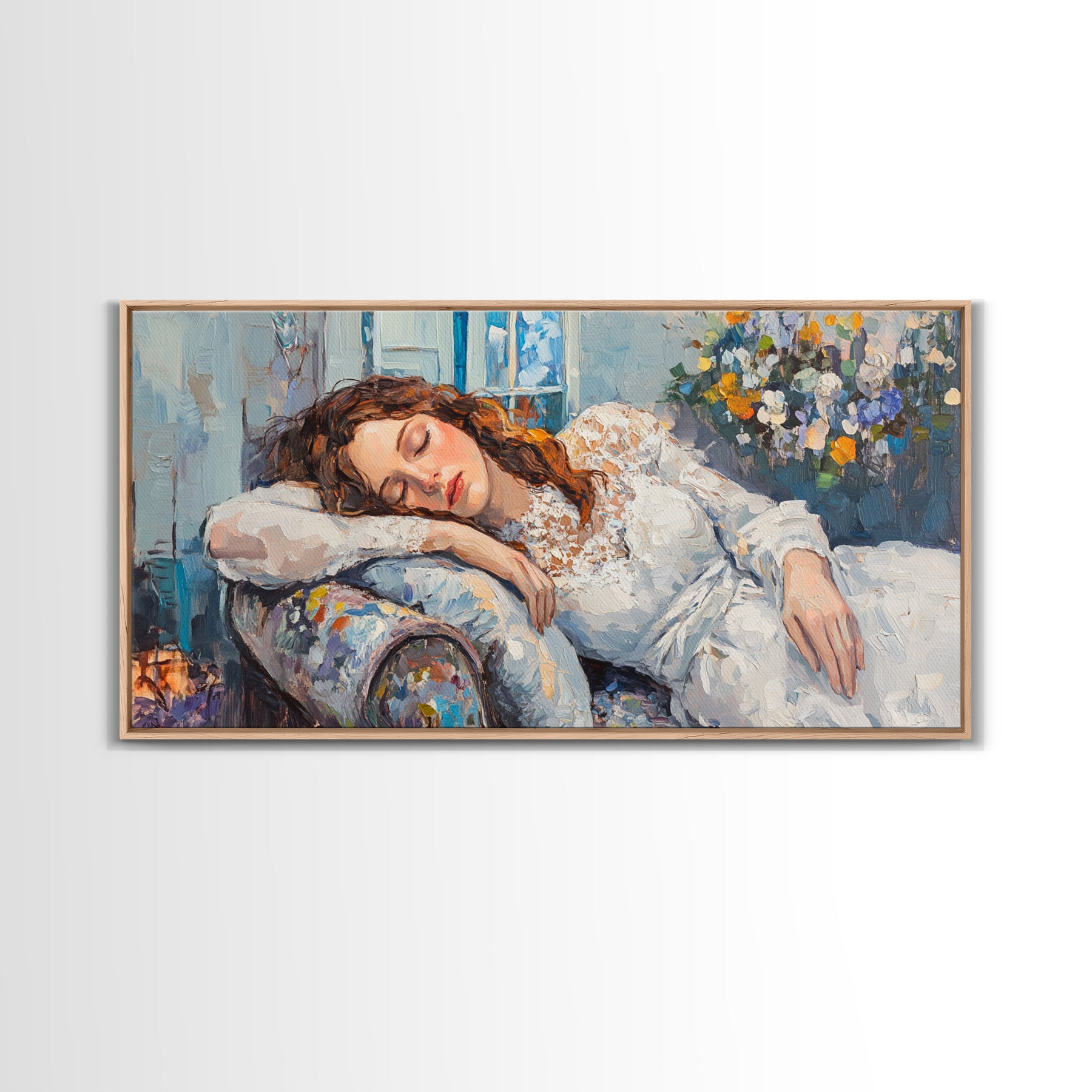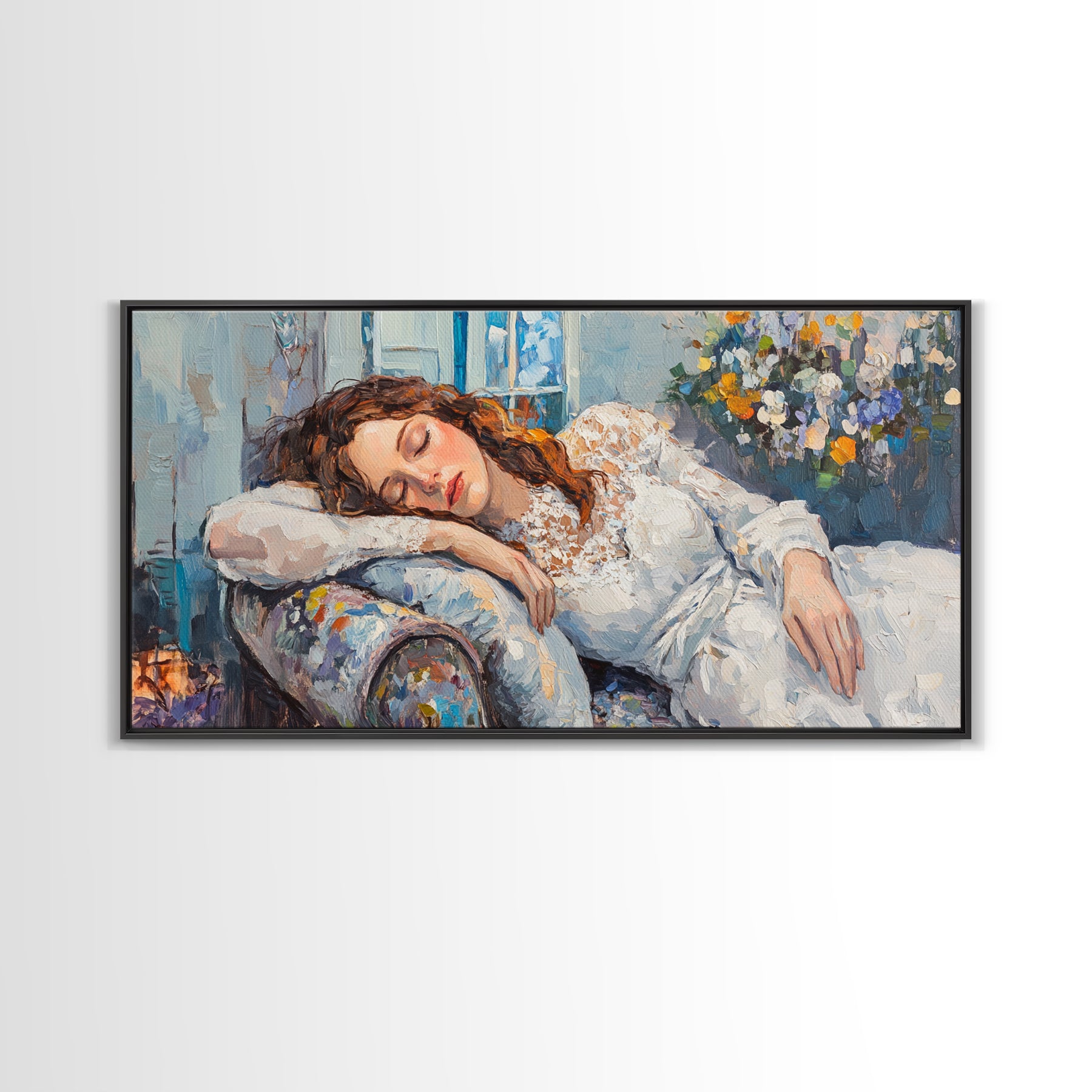 Decadent Young Woman Inspired Wall Art, Framed Canvas Print, Victorian Oil Painting Of a Woman Taking a Nap, Cute Bedroom Decor