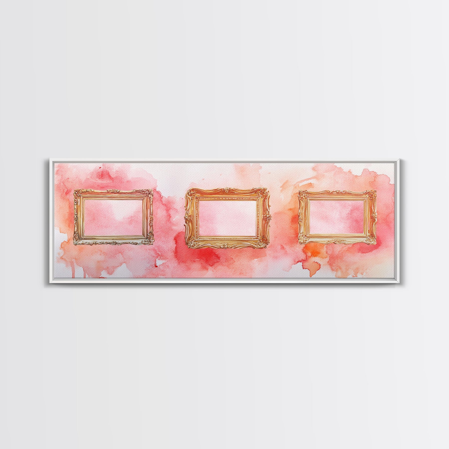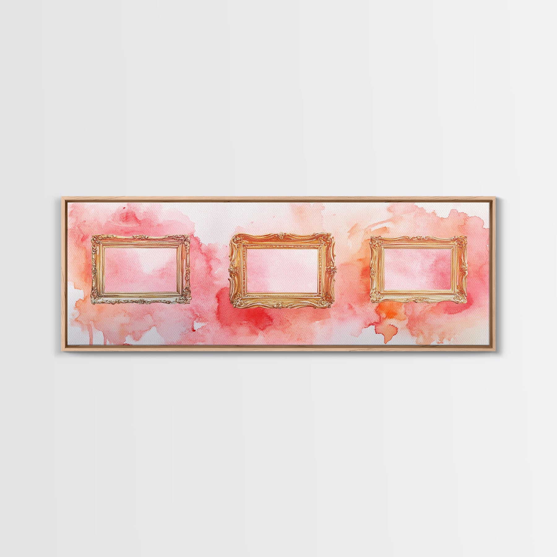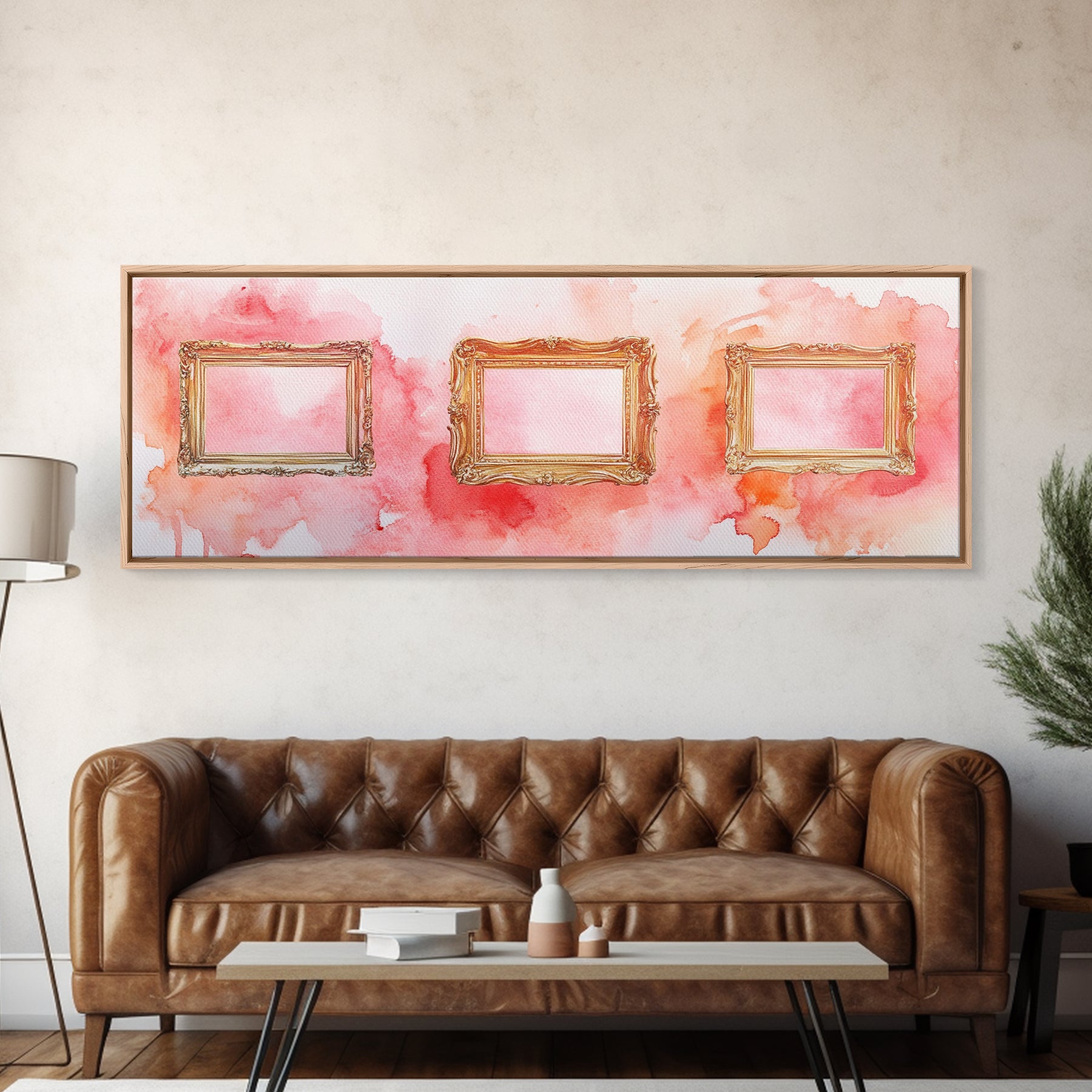 Decorative Frames Painting Canvas Print with Elegant Pink Abstract Background, Long Narrow Wall Art Perfect for Living Room Decor