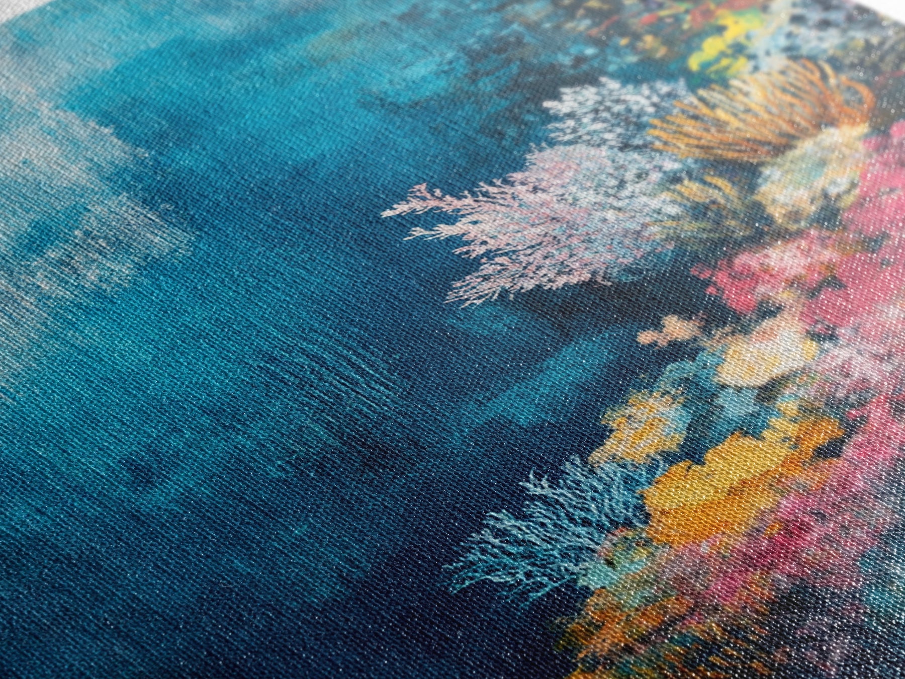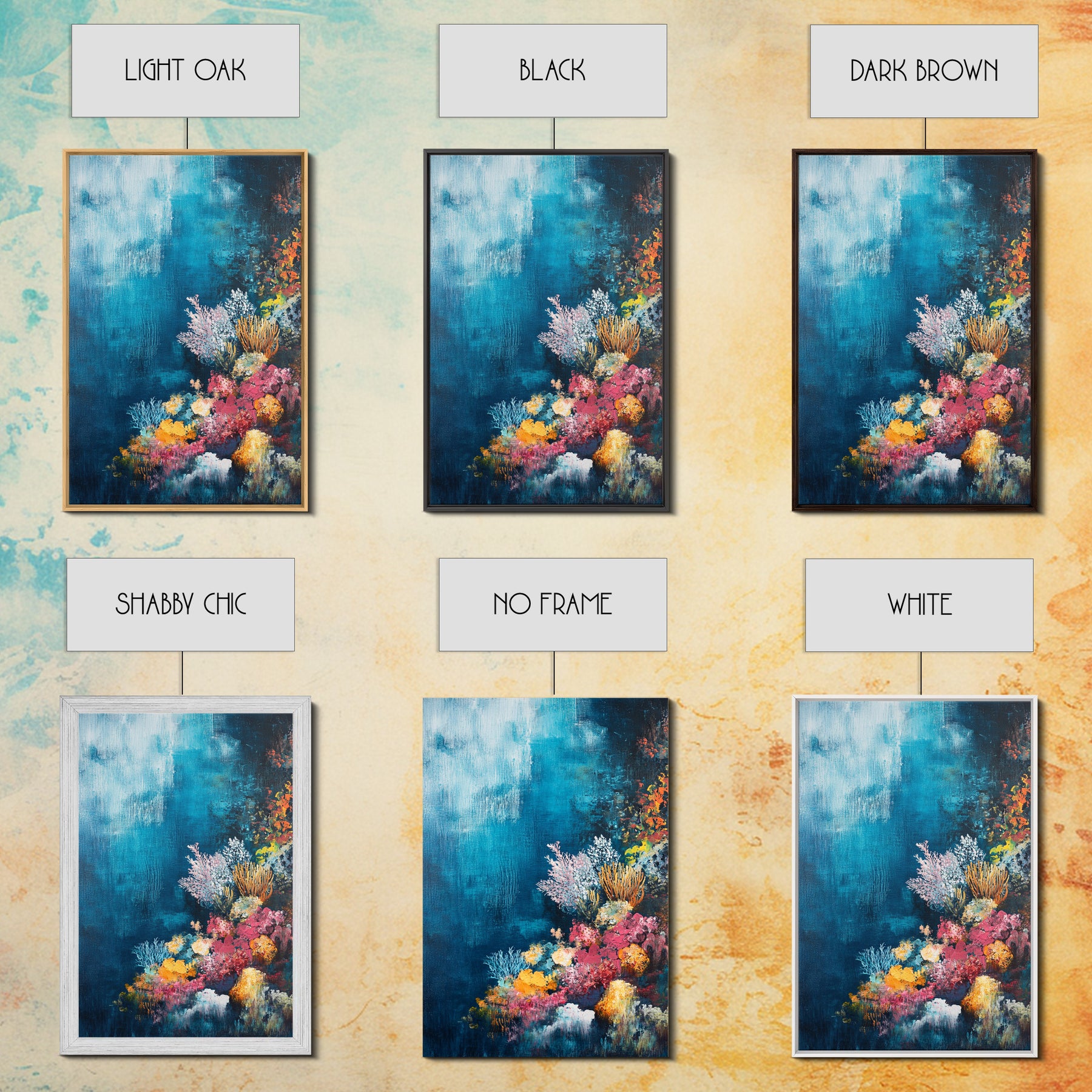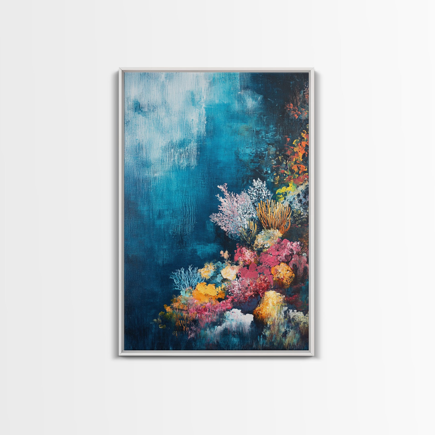 Deep Sea Coral, ocean painting, nautical decor, coastal wall art, blue and green wall art, above sofa art, Framed Canvas Print, gift idea