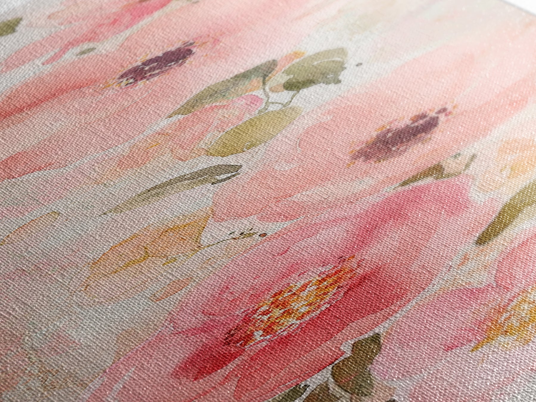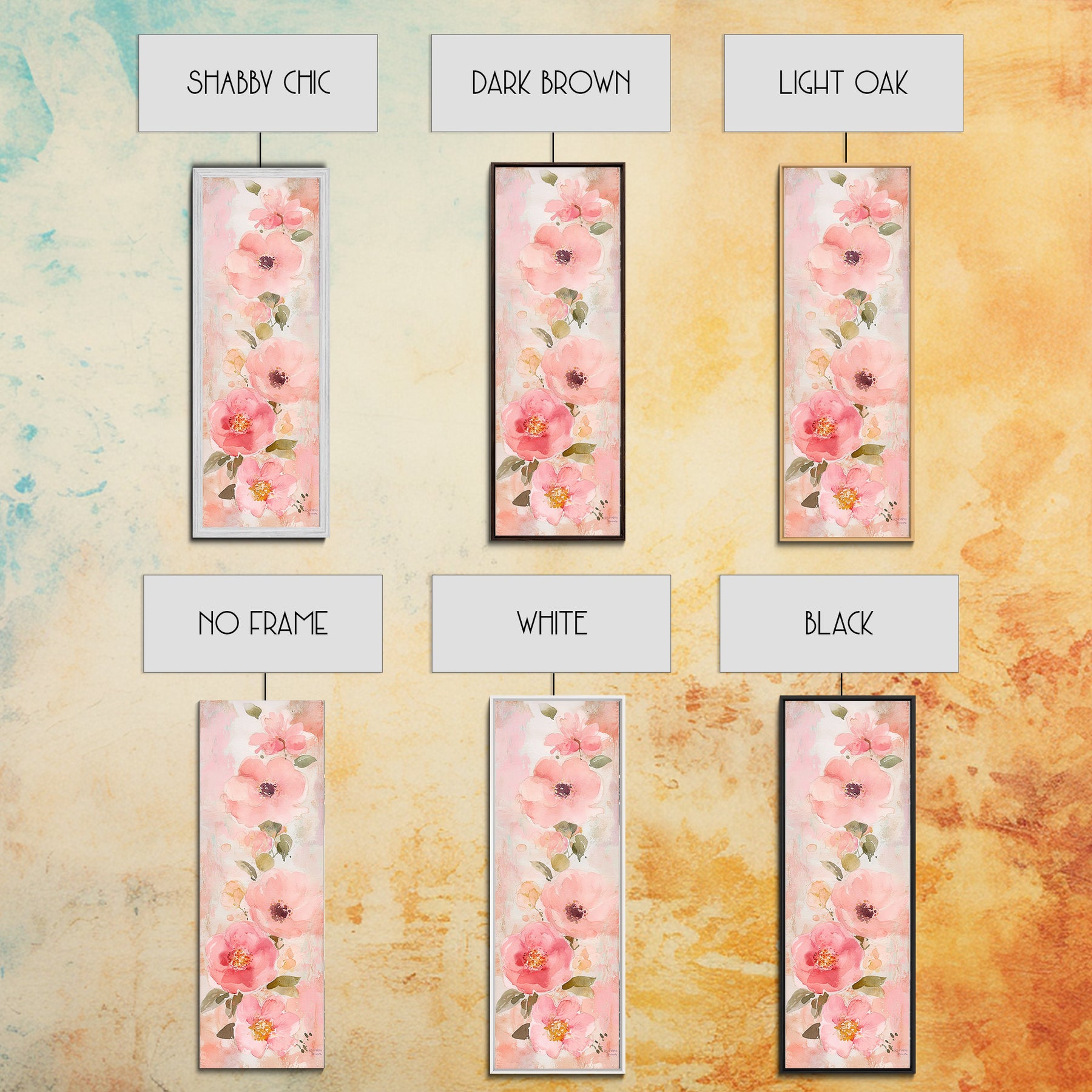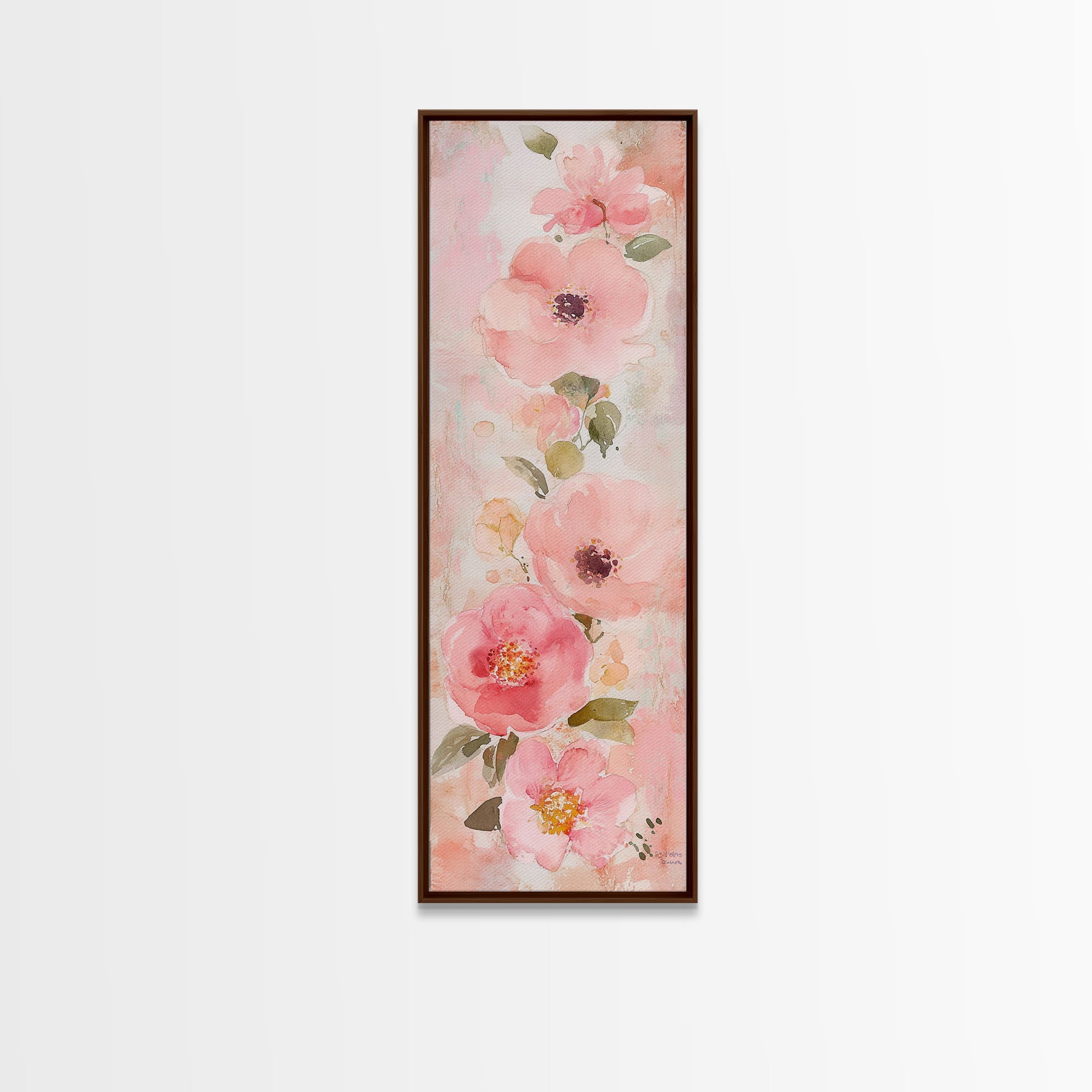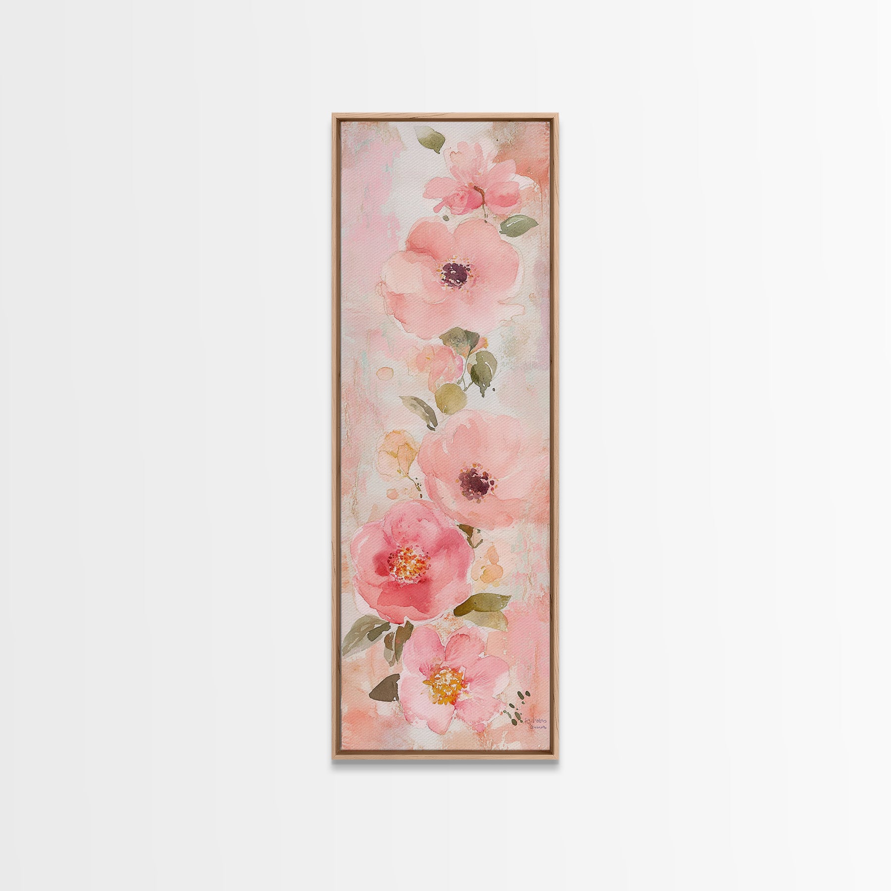 Delicate Floral Wildflower Framed Canvas Print Light Pink Botanical Prints Vertical Wall Art Tall Narrow Art Rustic Living Room Art