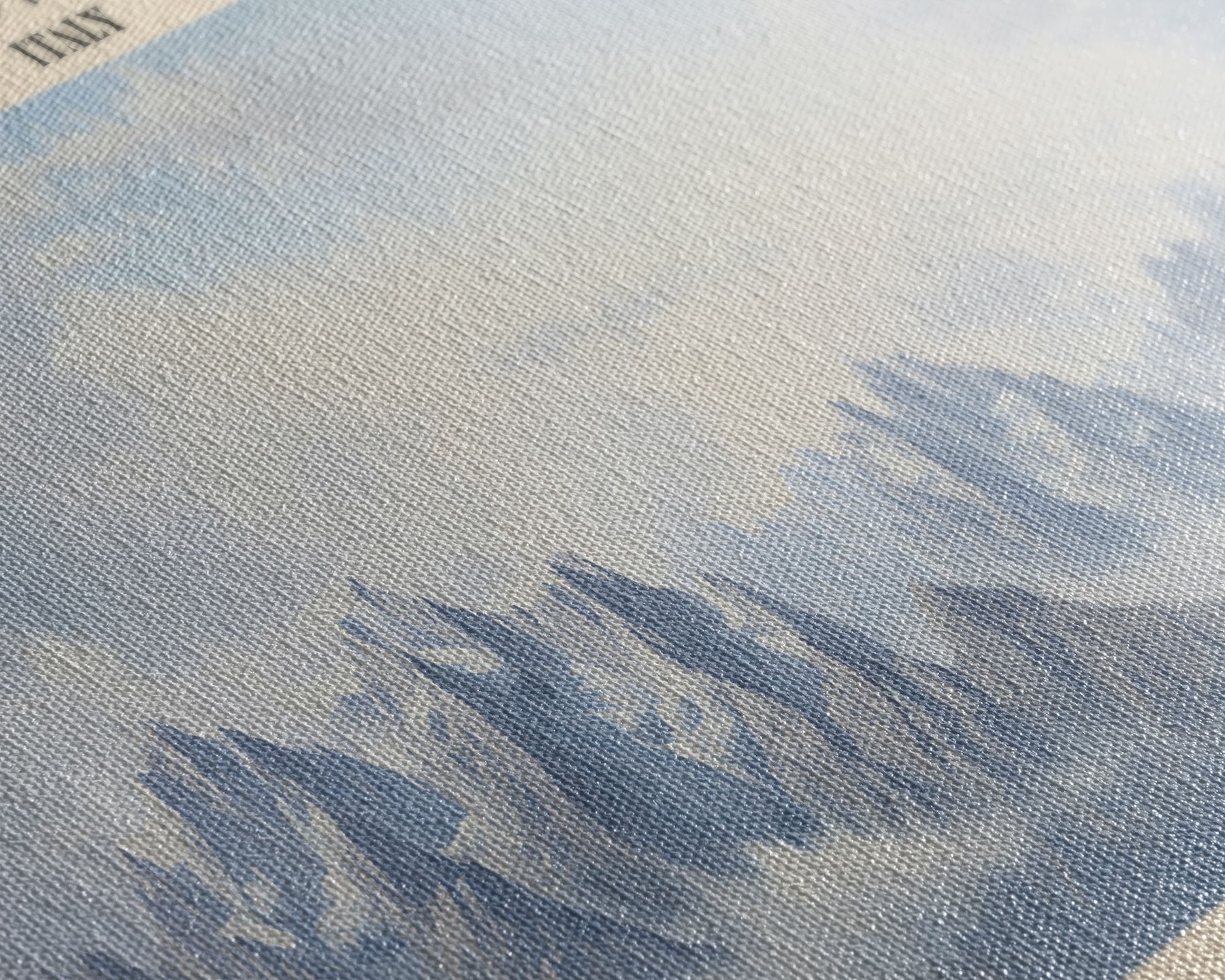 Most of our canvases are made in the USA, with the exception of canvases ordered with the light oak unstained frames, and any large canvases (24x48, 30x60, 16x48 and 20x60) ordered WITH a frame. These are temporarily made in and shipped from Europe, while we try to find a more consistent supplier in the USA.