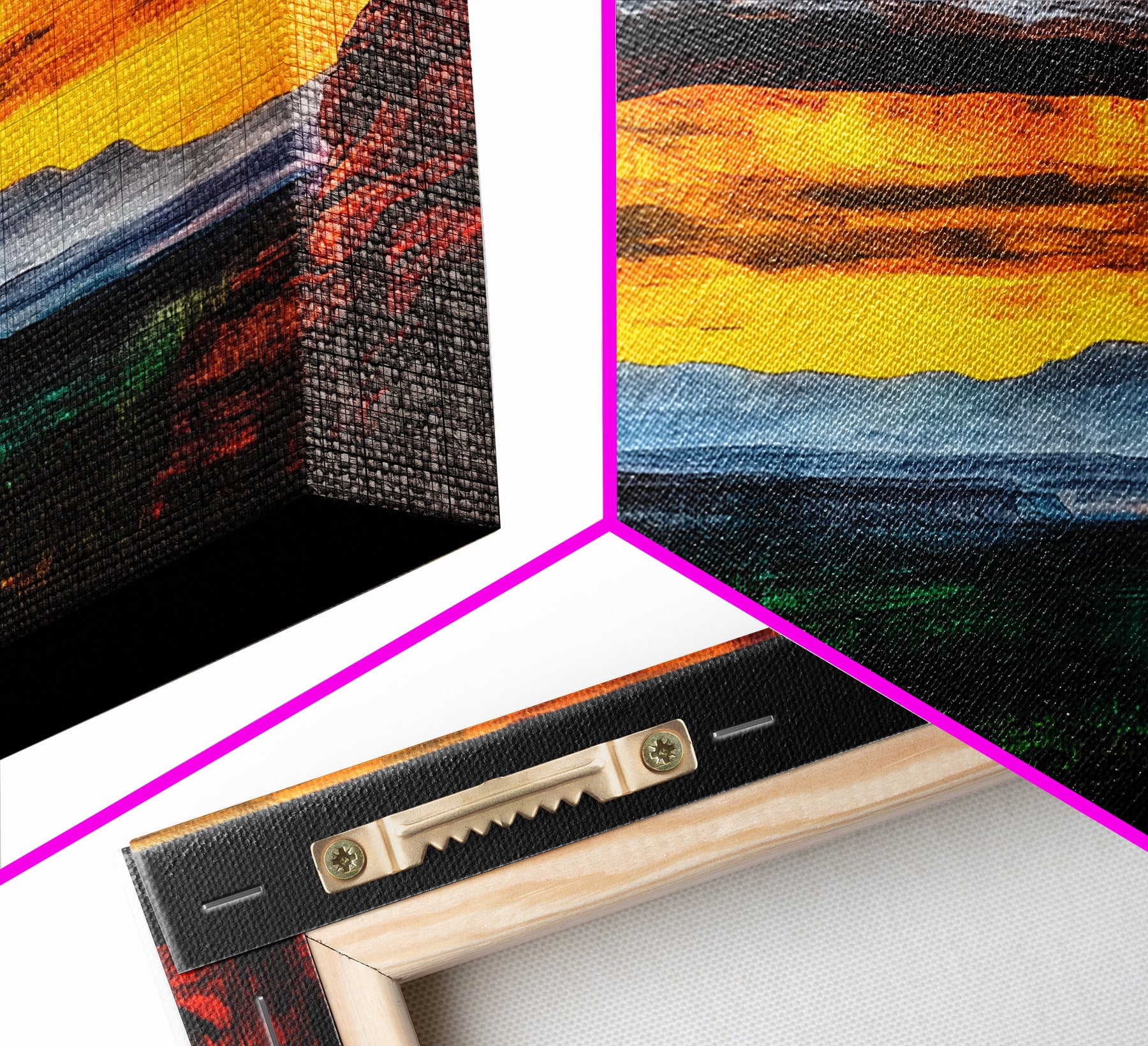 Hello and thank you for taking the time to view our modern high quality giclée artwork! We offer both posters and stretched canvas prints. Our posters are printed on Ultra Matte 60 lb / 230 GSM high quality photo paper, with a thickness of 10 mil. Our canvases are printed on museum grade 350 GSM canvas material with ECO friendly archival grade ink, then hand stretched and stapled over premium, FSC certified and shrink resistant frames. Designed and built to last a lifetime.