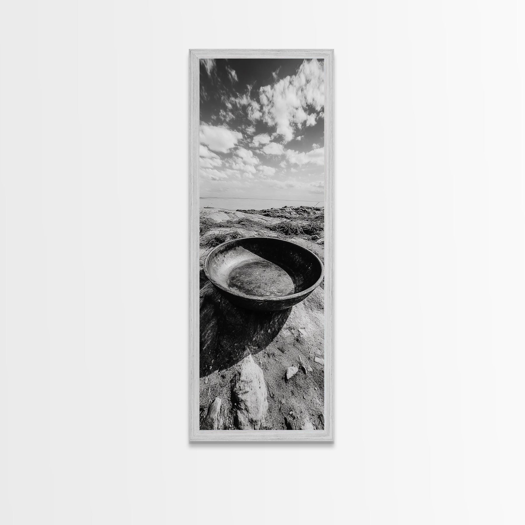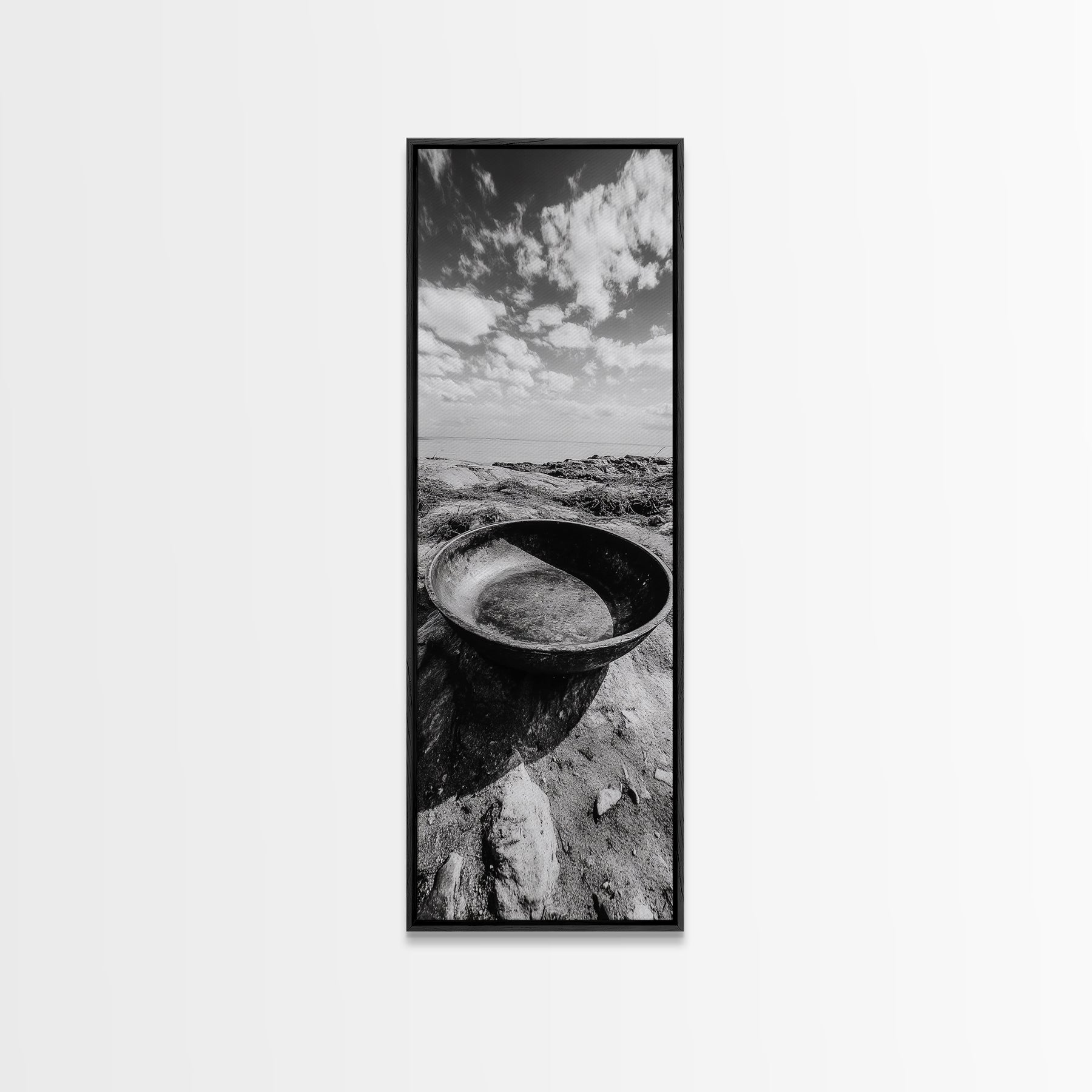 Desert Bowl, Coastal Landscape, Black and White Texture, Minimal Earth Tones, Framed Canvas Print, Rustic Farmhouse Kitchen Wall Art