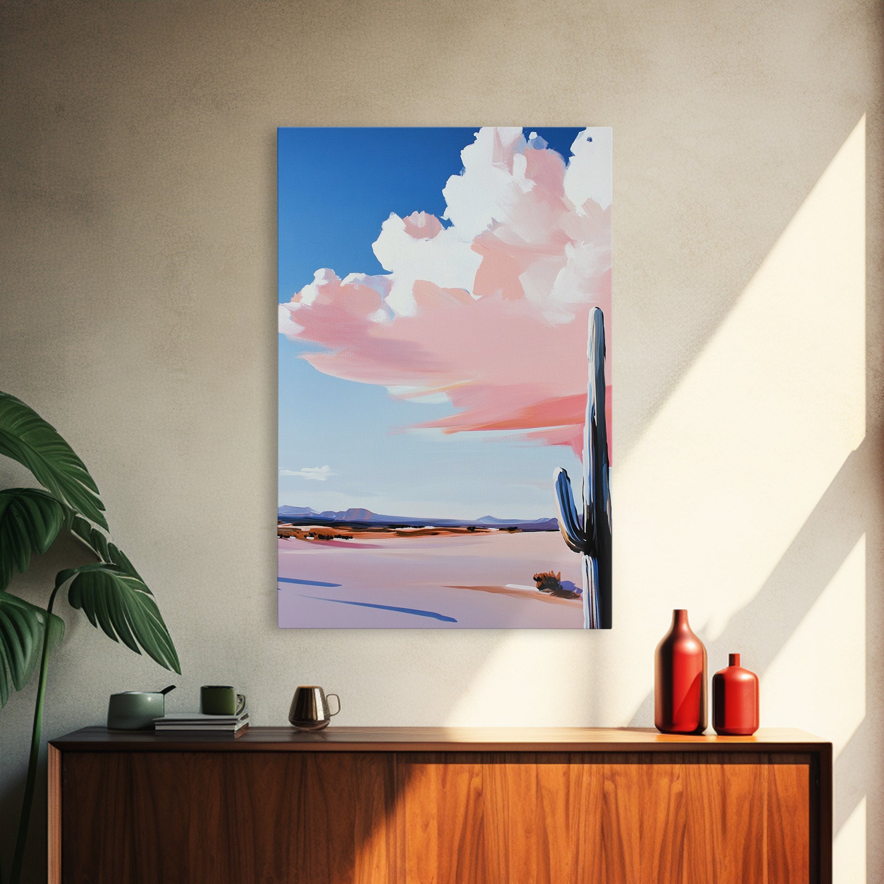 Desert Cactus Art, Southwestern Landscape Painting, Warm Boho Decor, Modern Nature Print, Framed Canvas Print, Living Room Wall Art
