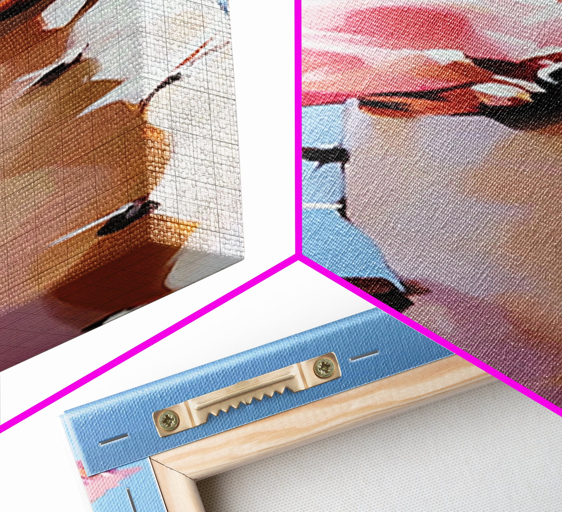 Hello and thank you for taking the time to view our modern high quality giclée artwork! We offer both posters and stretched canvas prints. Our posters are printed on Ultra Matte 60 lb / 230 GSM high quality photo paper, with a thickness of 10 mil. Our canvases are printed on museum grade 350 GSM canvas material with ECO friendly archival grade ink, then hand stretched and stapled over premium, FSC certified and shrink resistant frames. Designed and built to last a lifetime.