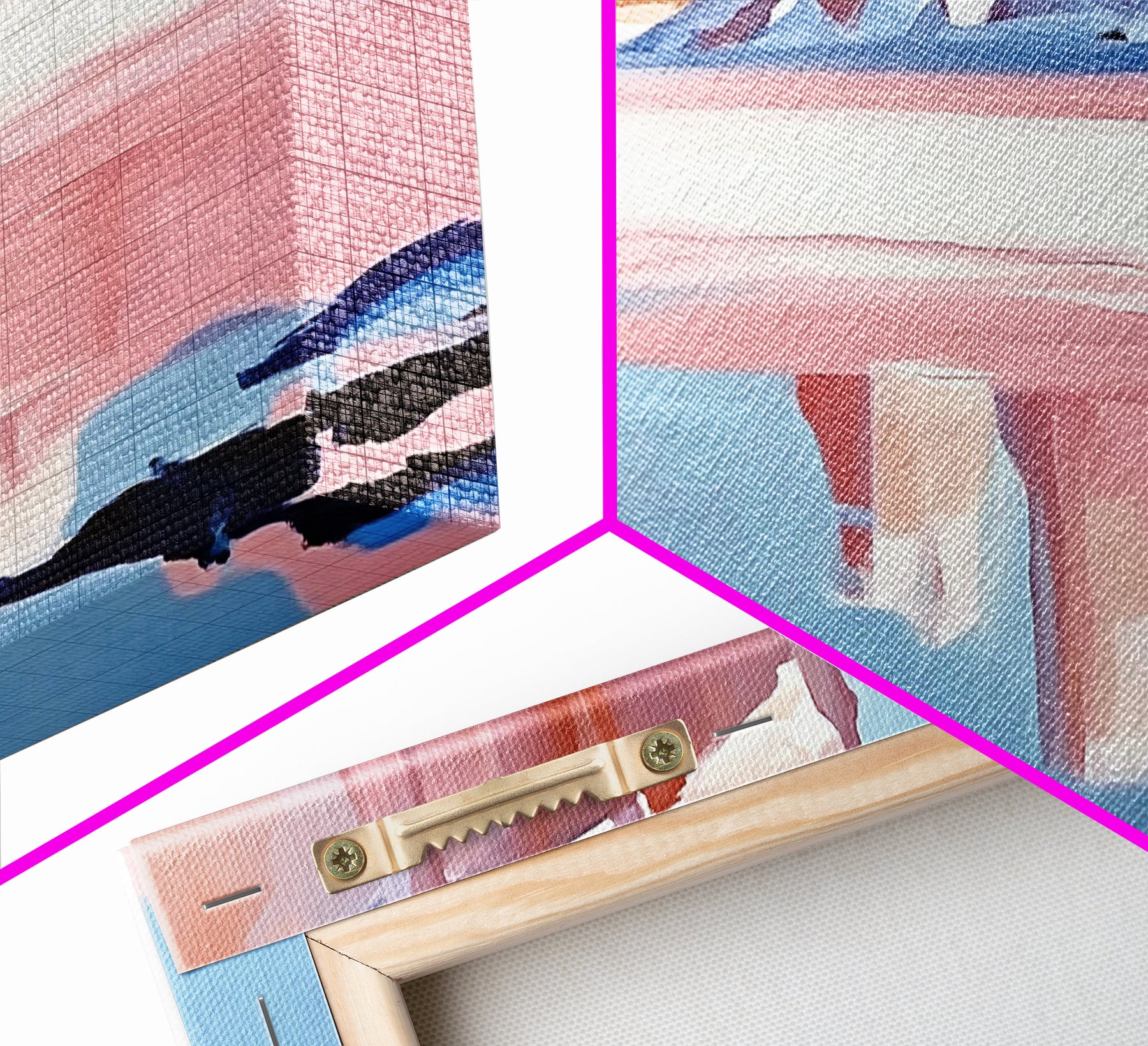 Hello and thank you for taking the time to view our modern high quality giclée artwork! We offer both posters and stretched canvas prints. Our posters are printed on Ultra Matte 60 lb / 230 GSM high quality photo paper, with a thickness of 10 mil. Our canvases are printed on museum grade 350 GSM canvas material with ECO friendly archival grade ink, then hand stretched and stapled over premium, FSC certified and shrink resistant frames. Designed and built to last a lifetime.