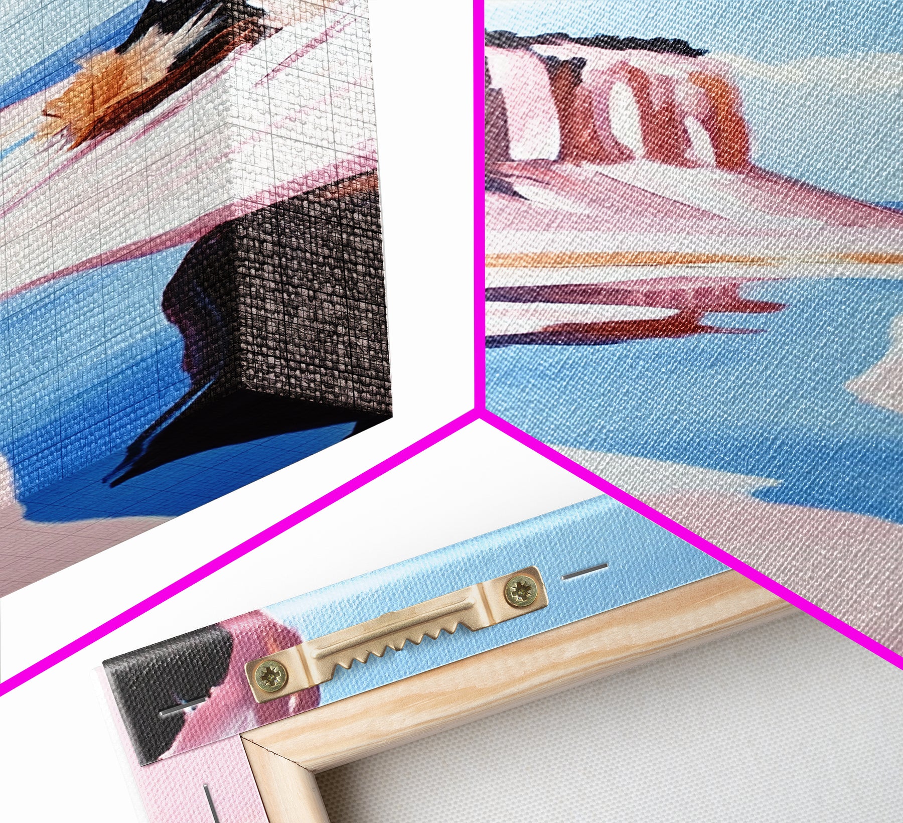 Hello and thank you for taking the time to view our modern high quality giclée artwork! We offer both posters and stretched canvas prints. Our posters are printed on Ultra Matte 60 lb / 230 GSM high quality photo paper, with a thickness of 10 mil. Our canvases are printed on museum grade 350 GSM canvas material with ECO friendly archival grade ink, then hand stretched and stapled over premium, FSC certified and shrink resistant frames. Designed and built to last a lifetime.