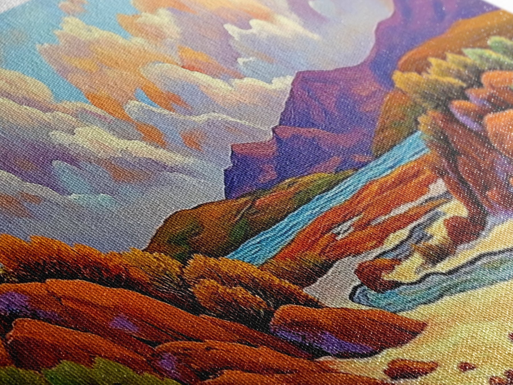 Most of our canvases are made in the USA, with the exception of canvases ordered with the light oak unstained frames, and any large canvases (24x48, 30x60, 16x48 and 20x60) ordered WITH a frame. These are temporarily made in and shipped from Europe, while we try to find a more consistent supplier in the USA.