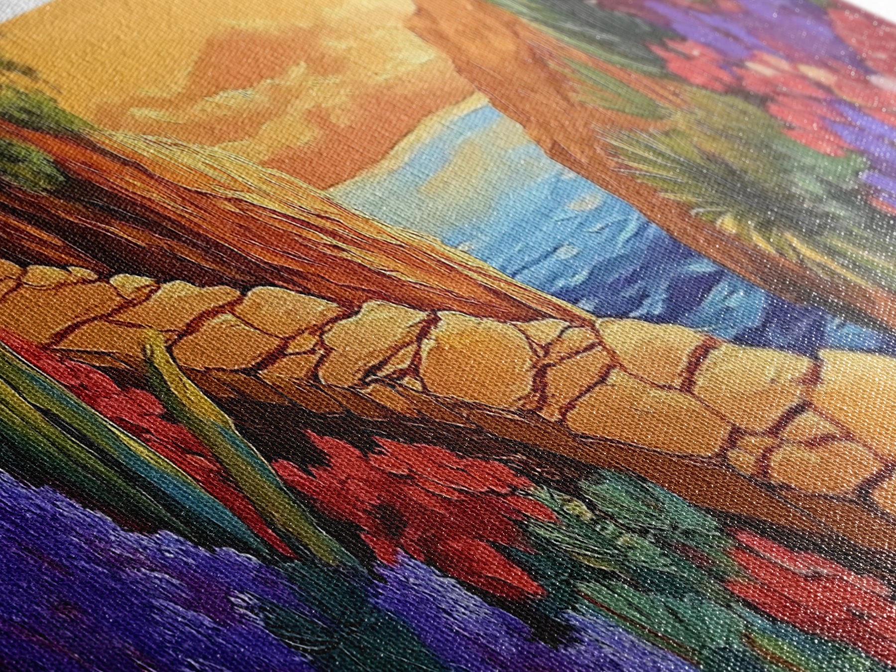 Most of our canvases are made in the USA, with the exception of canvases ordered with the light oak unstained frames, and any large canvases (24x48, 30x60, 16x48 and 20x60) ordered WITH a frame. These are temporarily made in and shipped from Europe, while we try to find a more consistent supplier in the USA.
