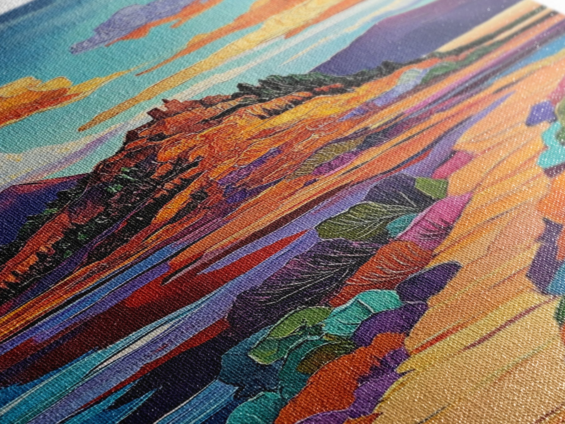 Most of our canvases are made in the USA, with the exception of canvases ordered with the light oak unstained frames, and any large canvases (24x48, 30x60, 16x48 and 20x60) ordered WITH a frame. These are temporarily made in and shipped from Europe, while we try to find a more consistent supplier in the USA.