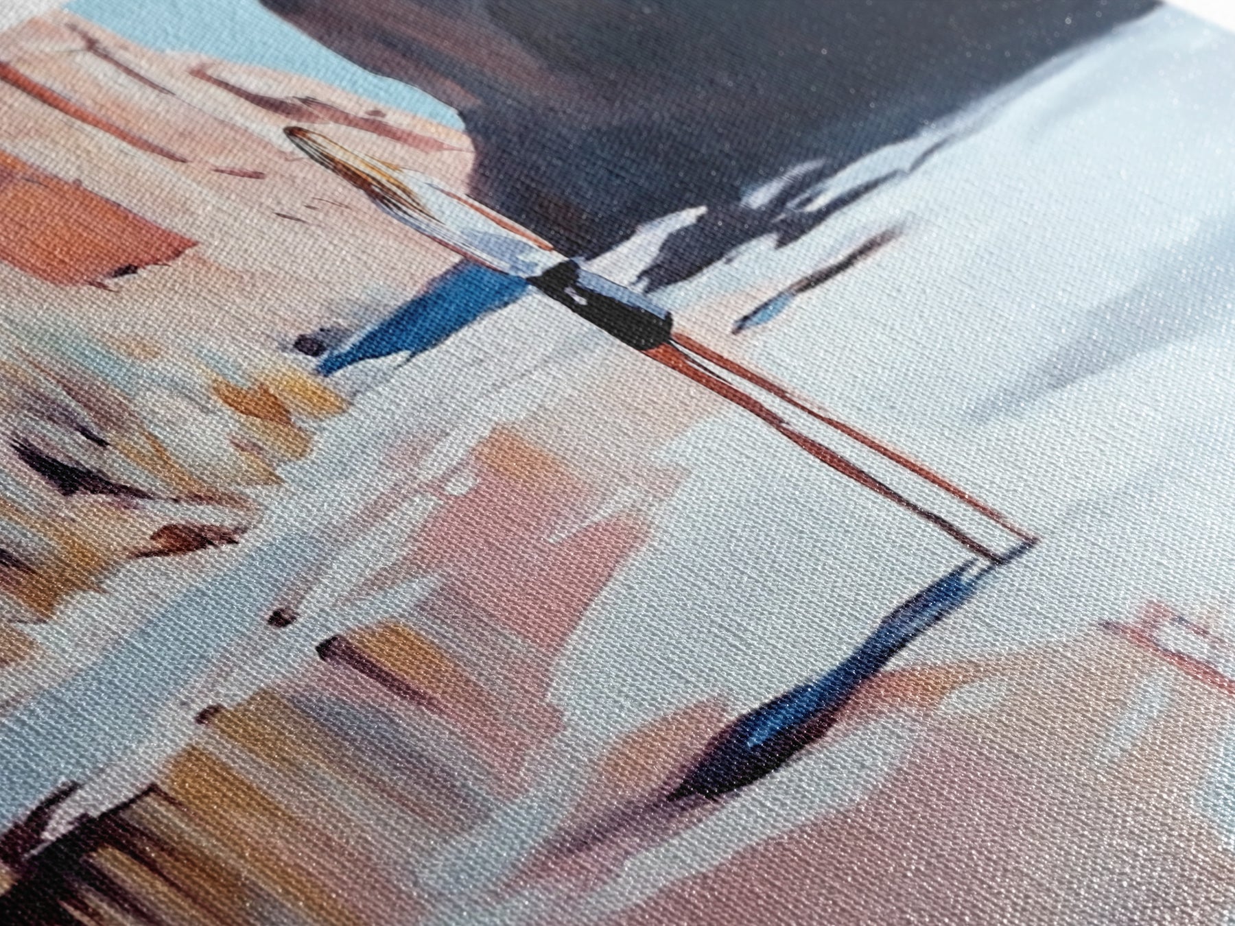 Most of our canvases are made in the USA, with the exception of canvases ordered with the light oak unstained frames, and any large canvases (24x48, 30x60, 16x48 and 20x60) ordered WITH a frame. These are temporarily made in and shipped from Europe, while we try to find a more consistent supplier in the USA.
