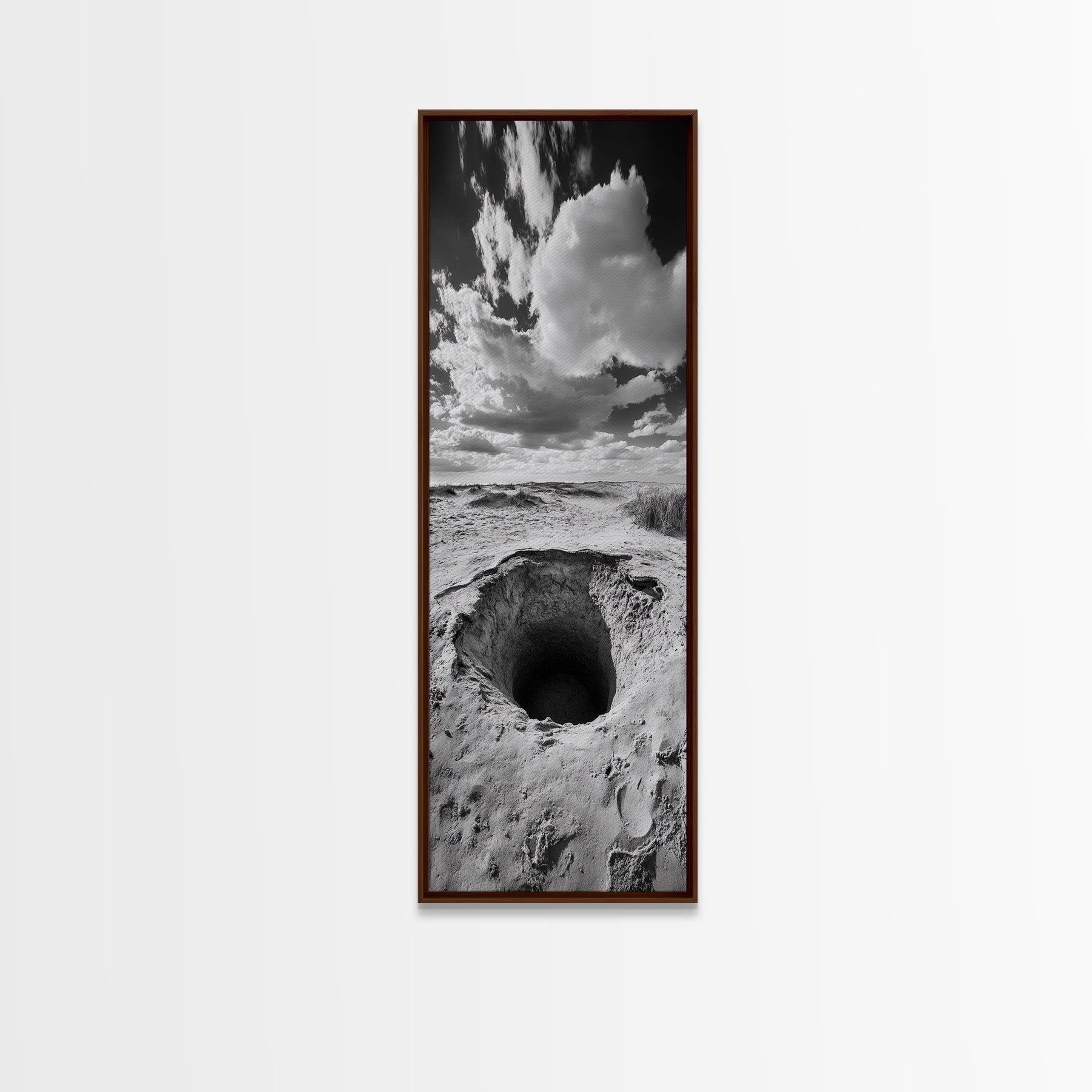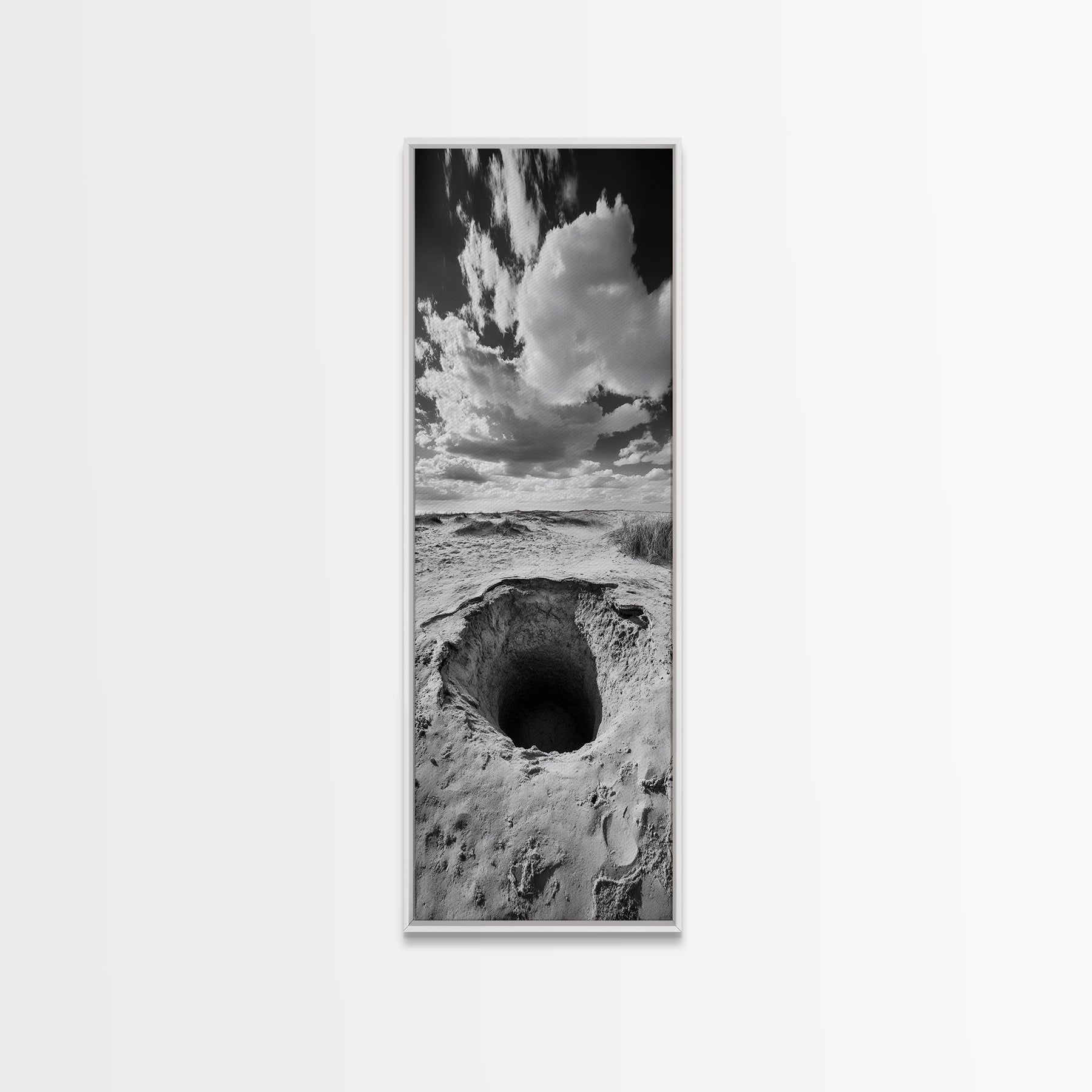 Desert Sinkhole Scene, Mysterious Landscape, Surreal Earth Art, Framed Canvas Print, Moody Bedroom Print, Office Wall Art, Cabin Wall Art
