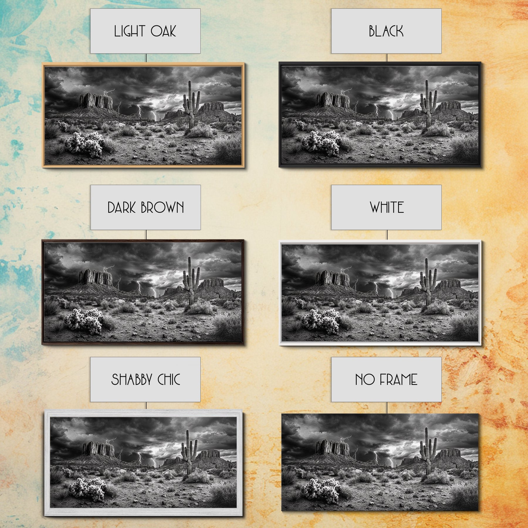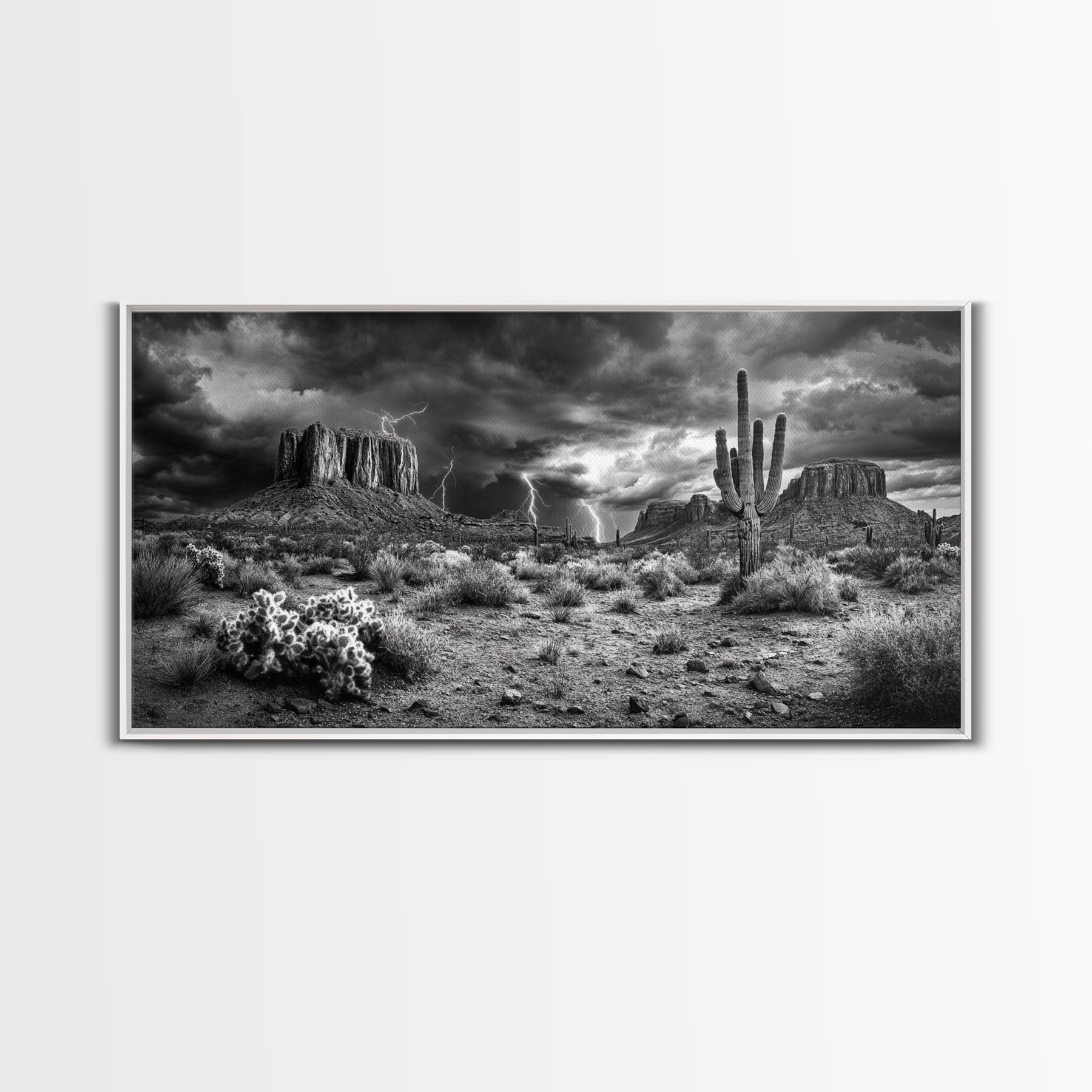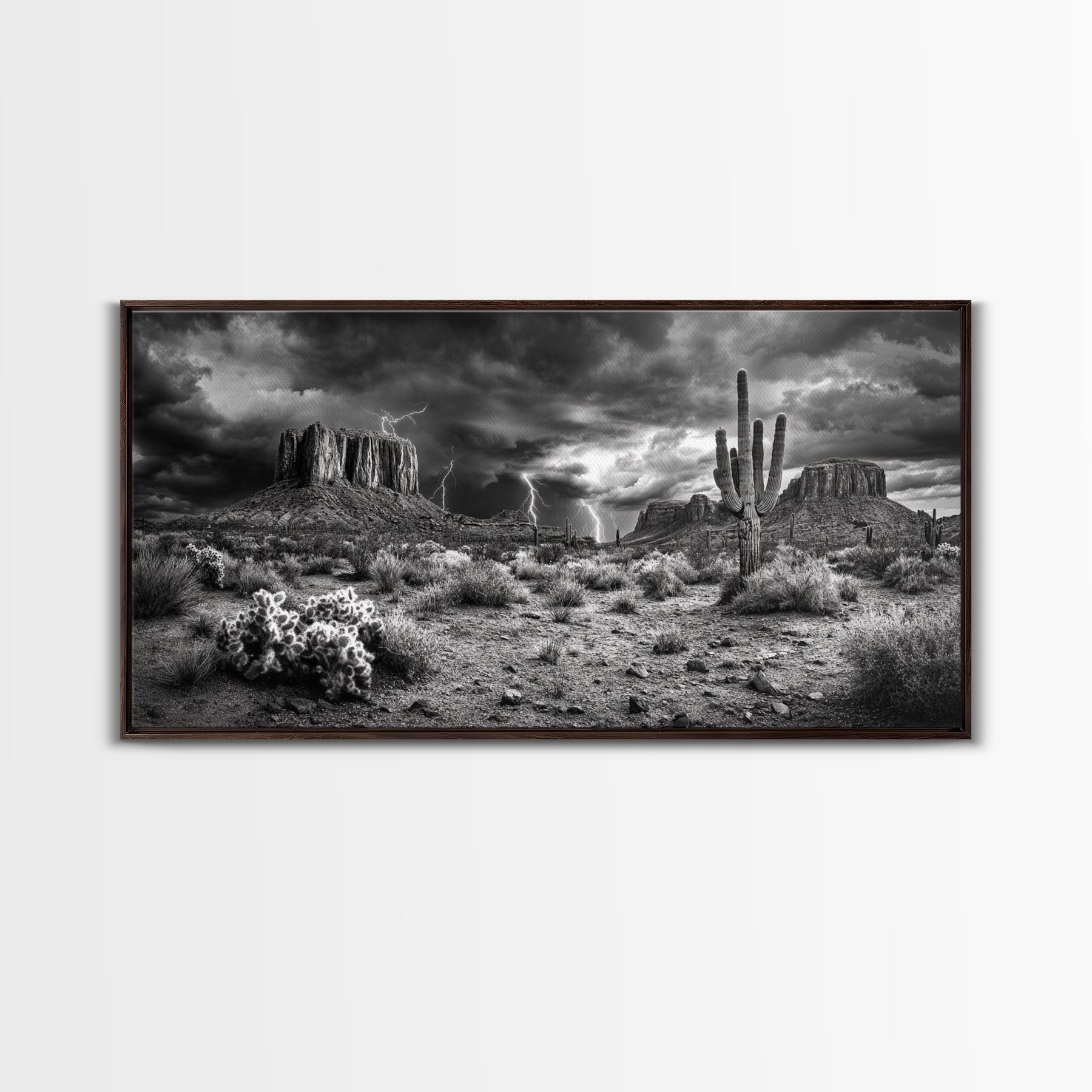 Desert Storm Scene, Lightning Landscape, Southwest Art, Dramatic Skies, Framed Canvas Print, Western Wall Art, Rustic Living Room Decor