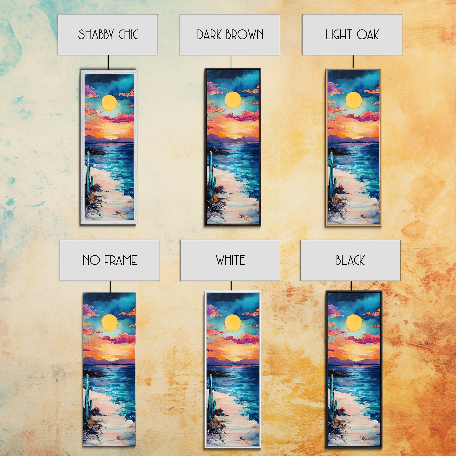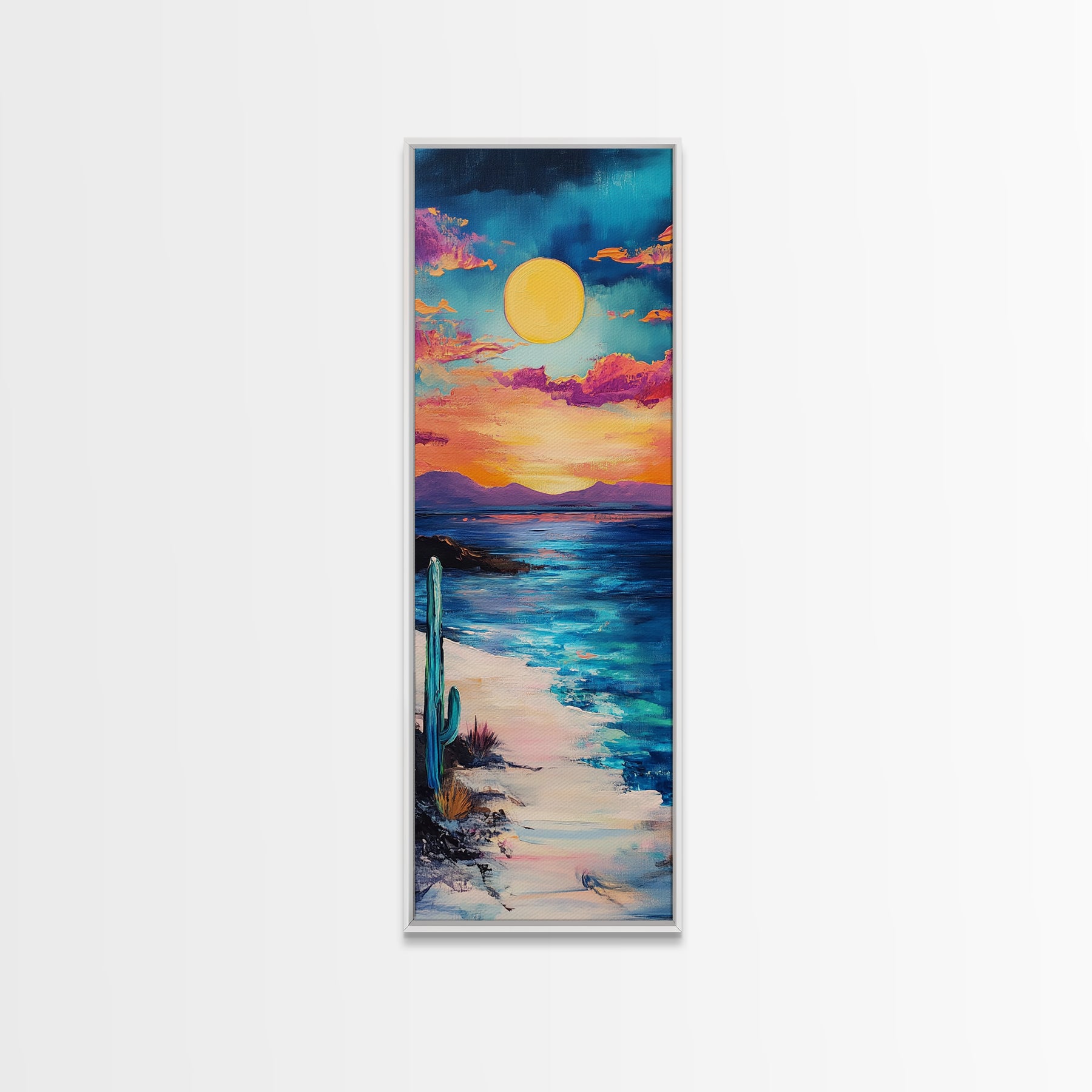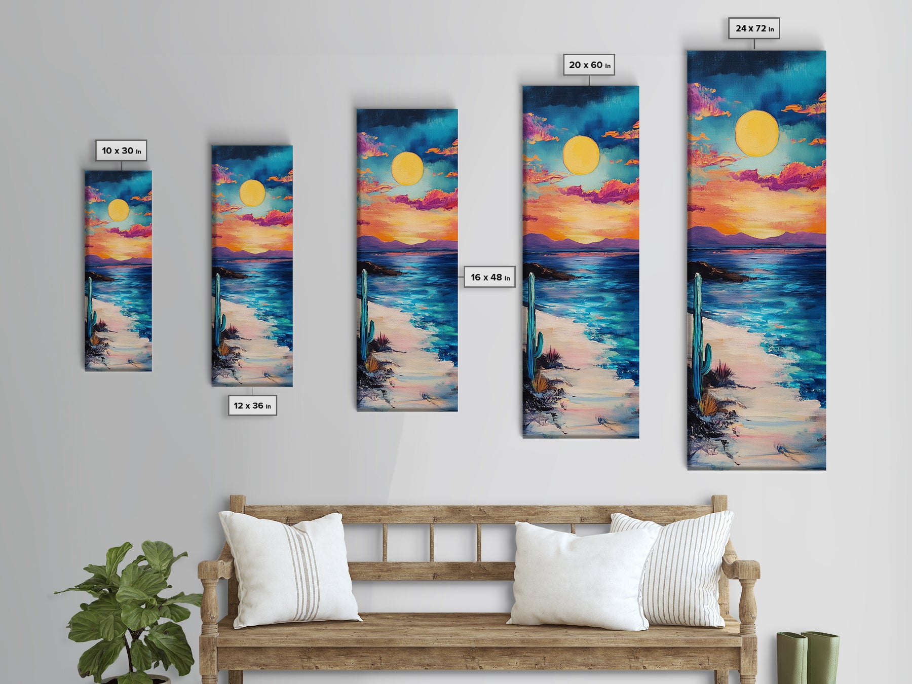 Desert Sunset, cactus painting, southwest wall art, coastal landscape art, framed canvas print, panoramic art