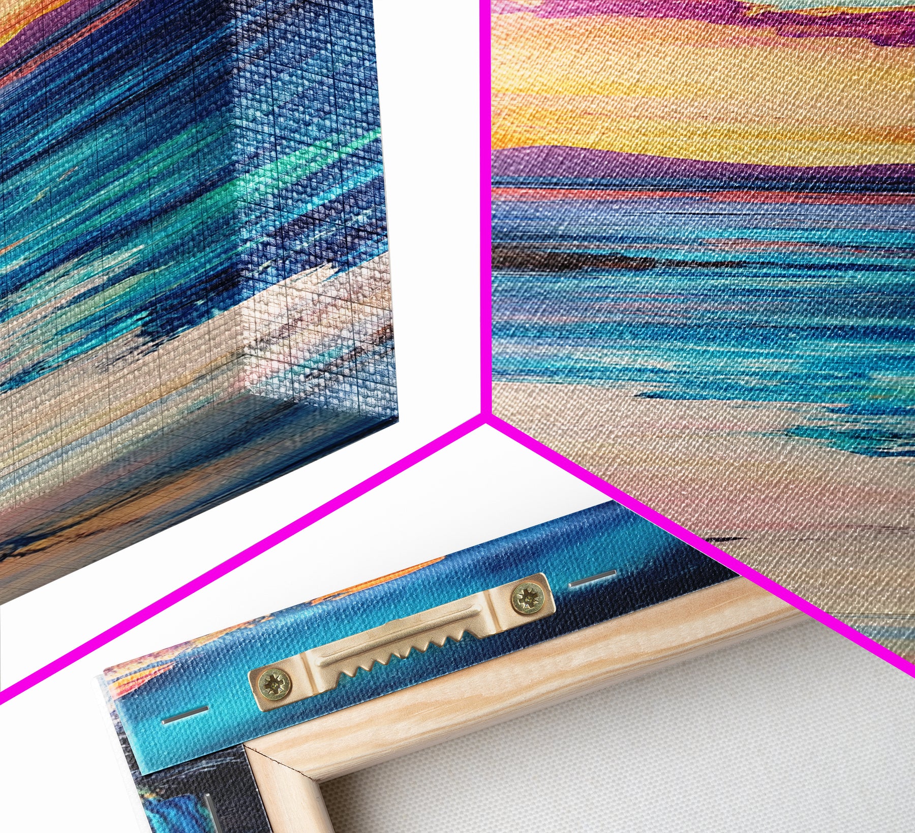 Hello and thank you for taking the time to view our modern high quality giclée artwork! We offer both posters and stretched canvas prints. Our posters are printed on Ultra Matte 60 lb / 230 GSM high quality photo paper, with a thickness of 10 mil. Our canvases are printed on museum grade 350 GSM canvas material with ECO friendly archival grade ink, then hand stretched and stapled over premium, FSC certified and shrink resistant frames. Designed and built to last a lifetime.