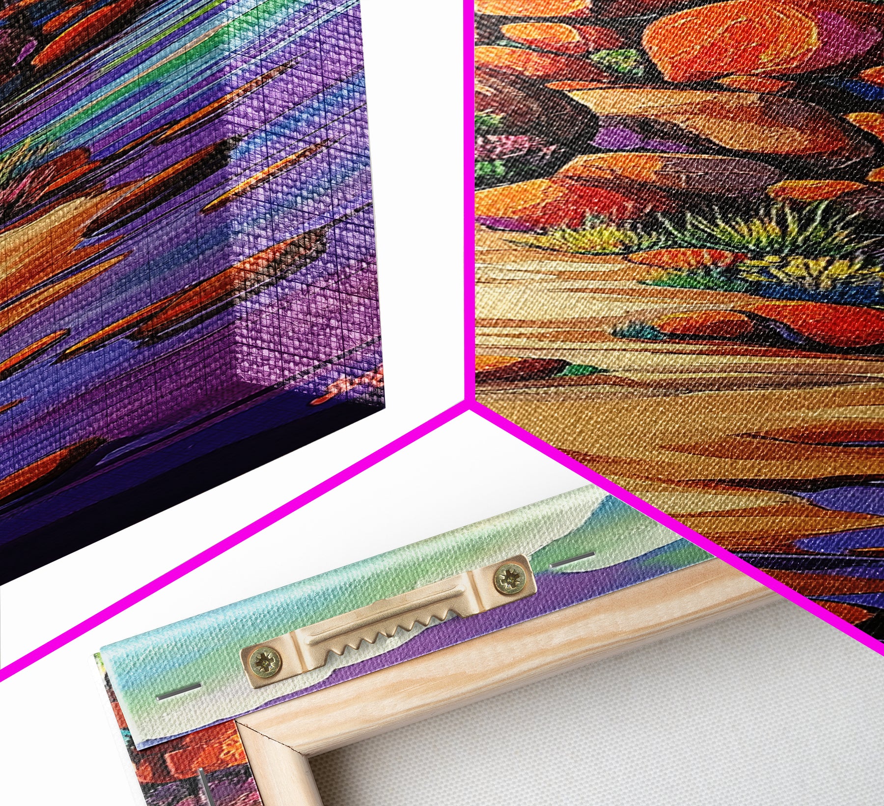 *Optional frames add a total of 1.5 inches to each dimension, for example a 10x20 canvas with a frame will be 11.5 by 21.5 inches total. All framed canvas are 1.5" total depth.