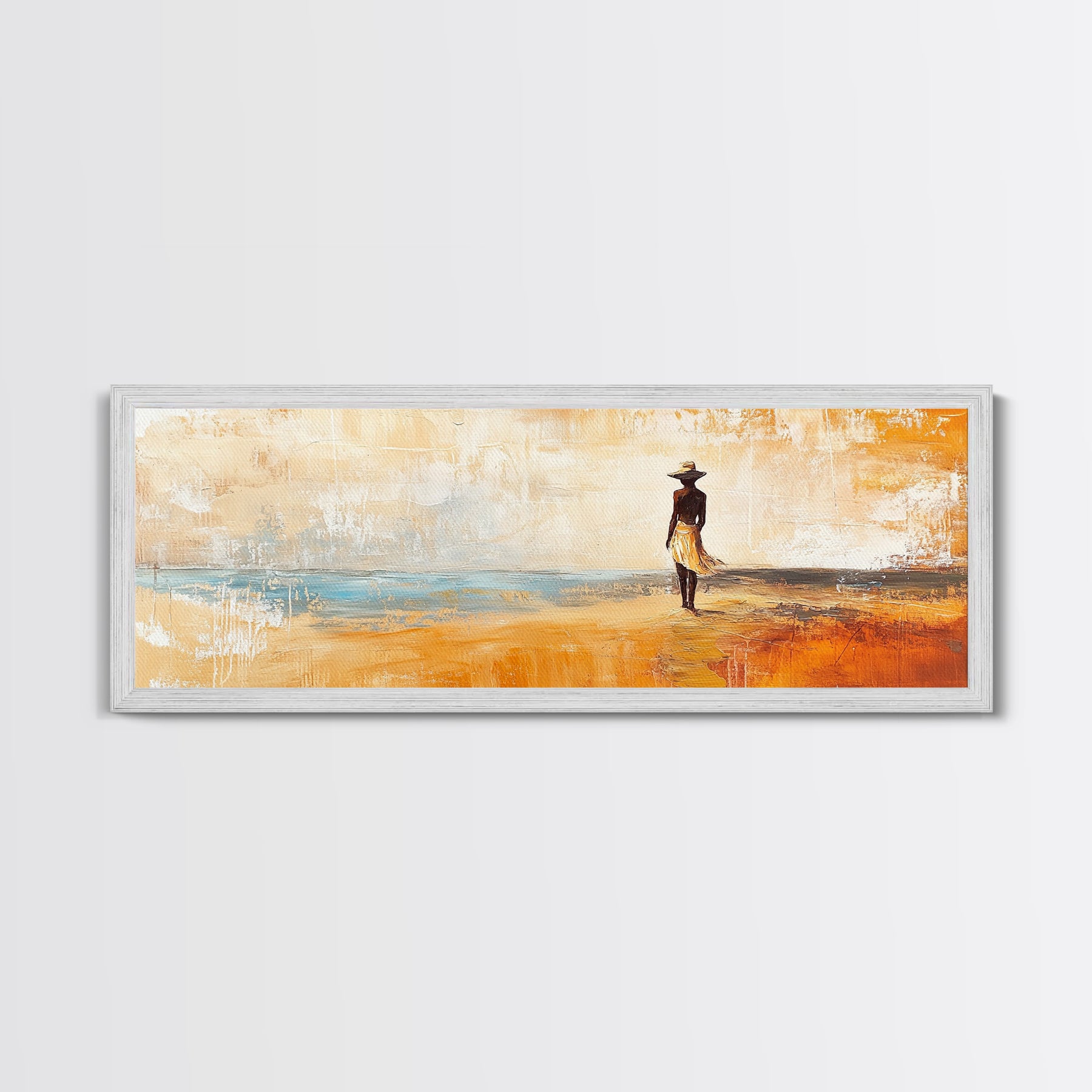Desert Woman, African art, coastal wall art, rustic decor, minimalist painting, warm tones, framed canvas print, extra wide art